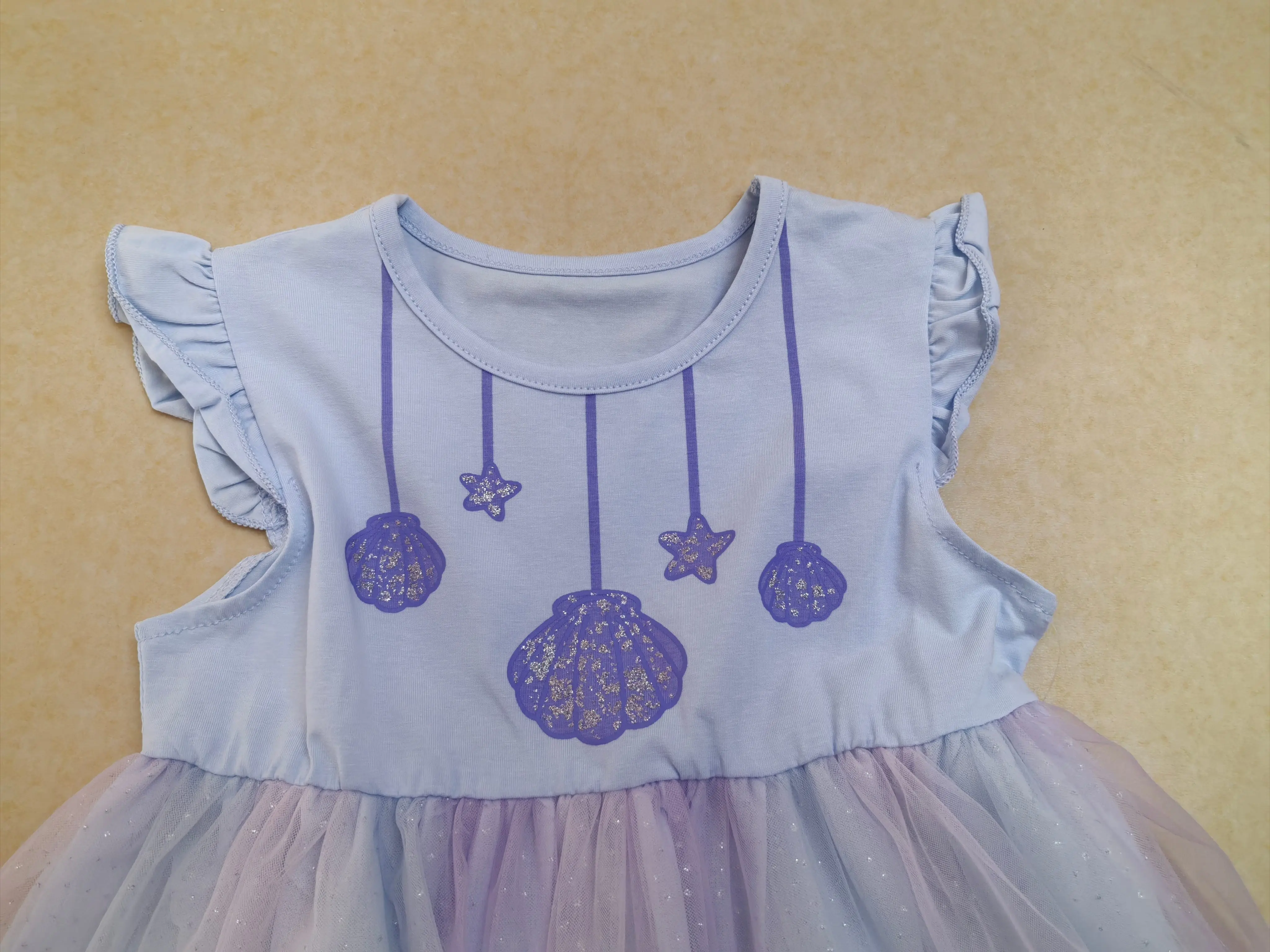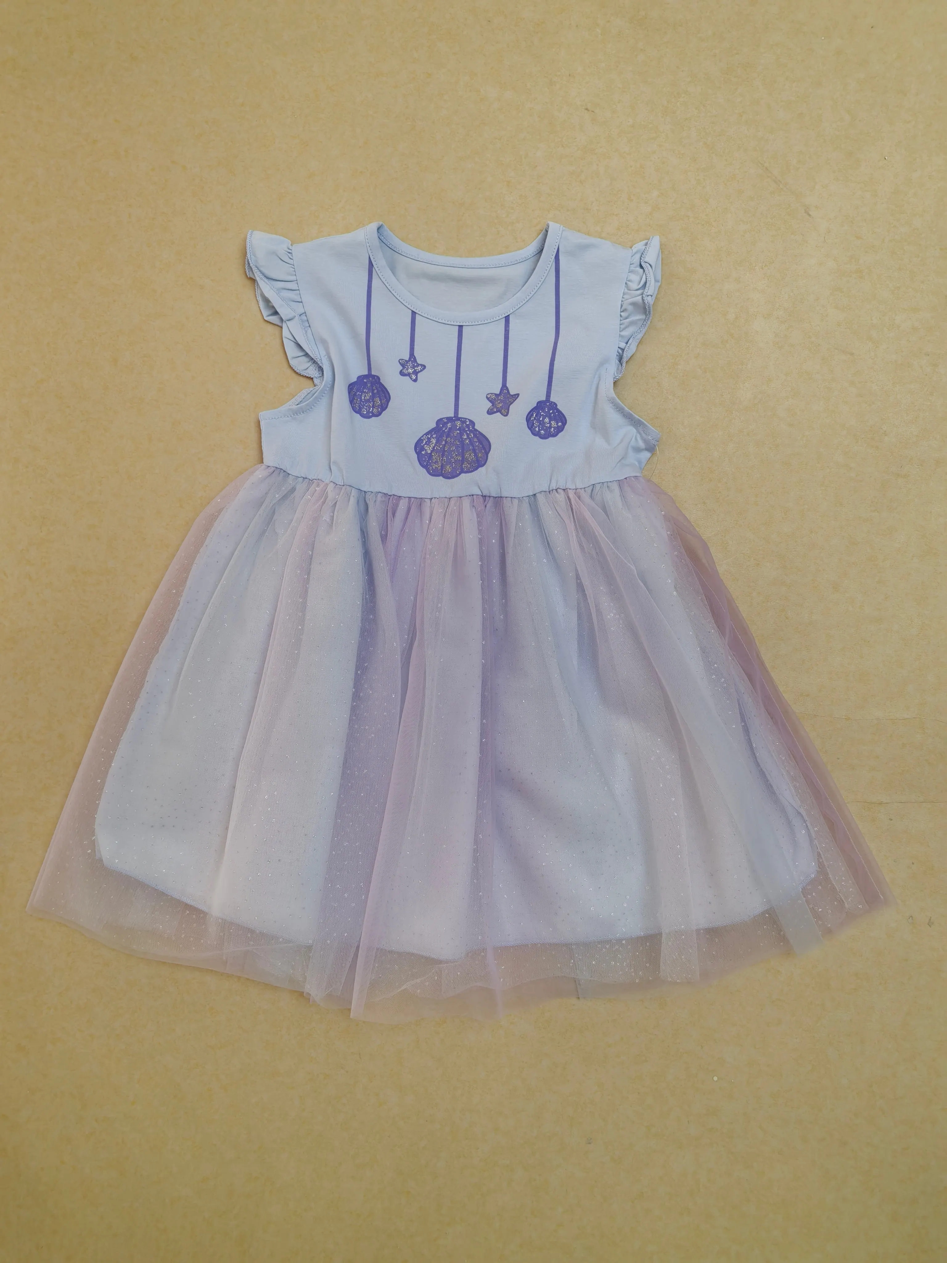 Girls' Summer High-Quality Macaron Pastel Purple & Soft White with Colorful Balloon Prints Short-Sleeve Design Lace Dress