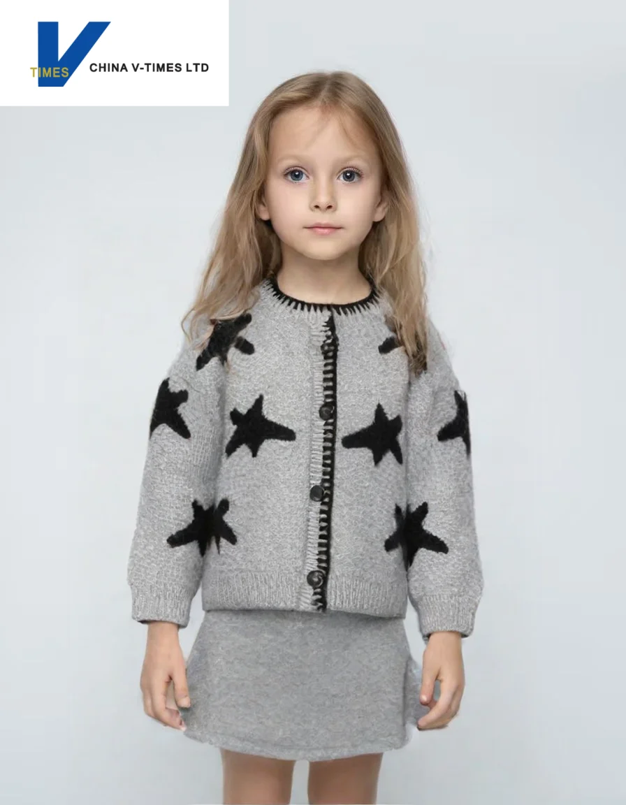 China V-Times Spring Autumn Girls' Sweater New Trendy Casual Children's Knitwear Baby Cardigan Jacket Autumn Children's Clothing