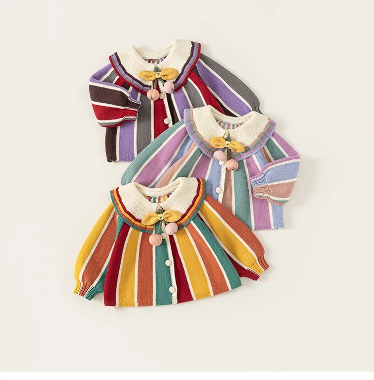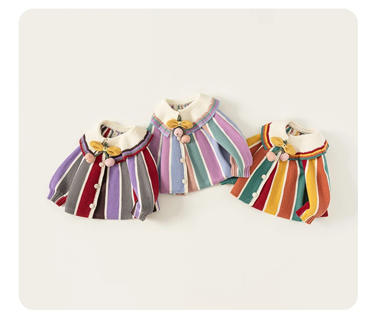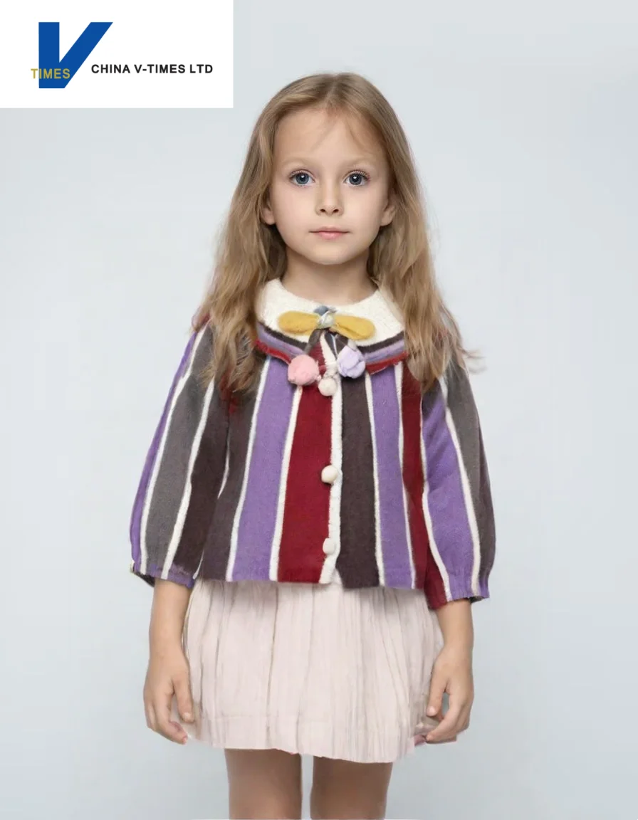 China V-Times 2026 Spring Autumn Girls Sweater Knitted Baby Cardigan Jacket Sweet Style New Children's Clothing for Girls