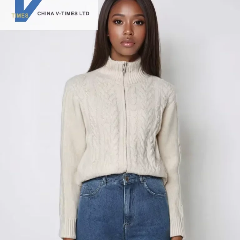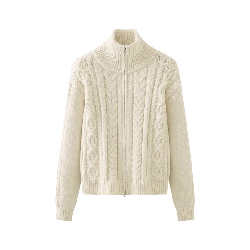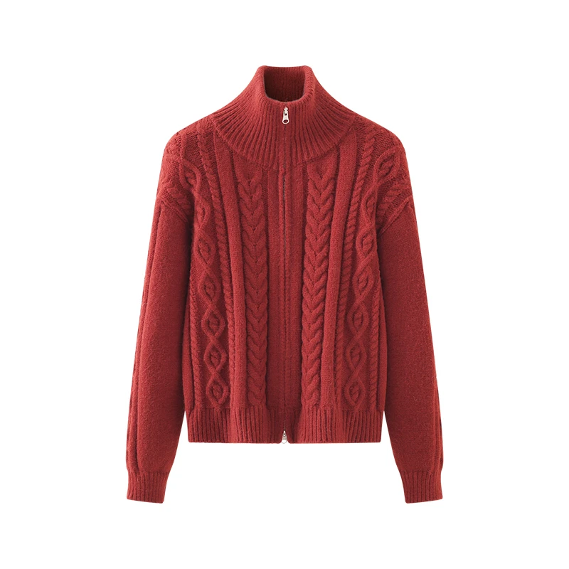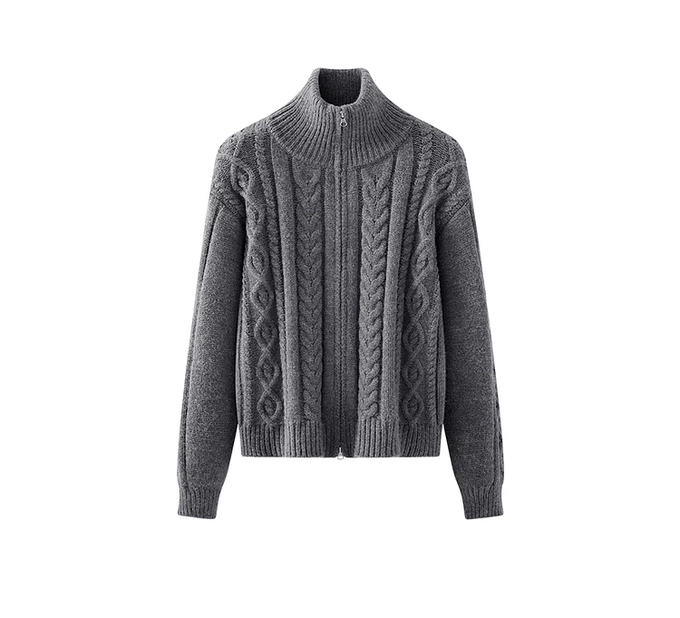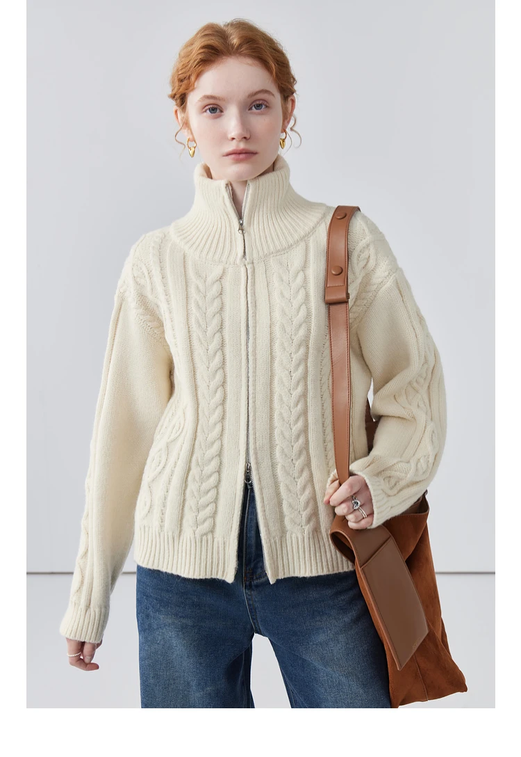 China V-times 2026 Women's Retro High-Neck Twist Double-Zipper Knitted Cardigan Loose Korean Style Autumn Sweater Jacket