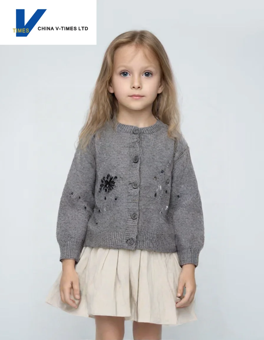 China V-Times 2026 Autumn Baby Knitted Cardigan Girls Sweater Early Autumn Outfit Casual Style Kids Clothing Children's Jacket