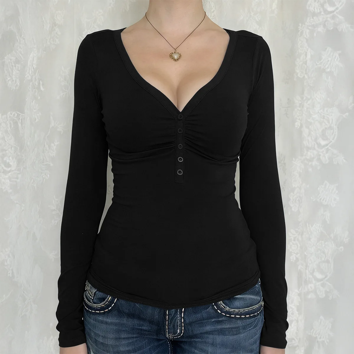 Women's Long Sleeve Shirts button up V Neck Fitted T Shirt Fall Going Out casual Tops ladies