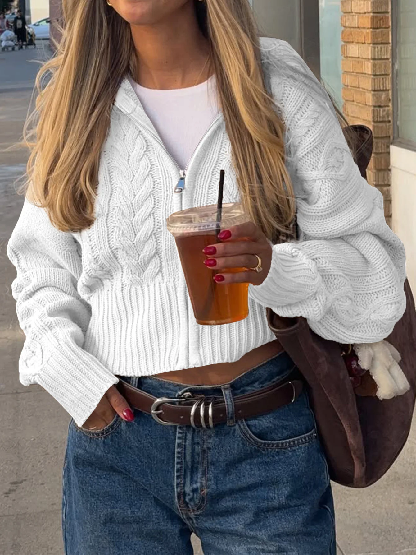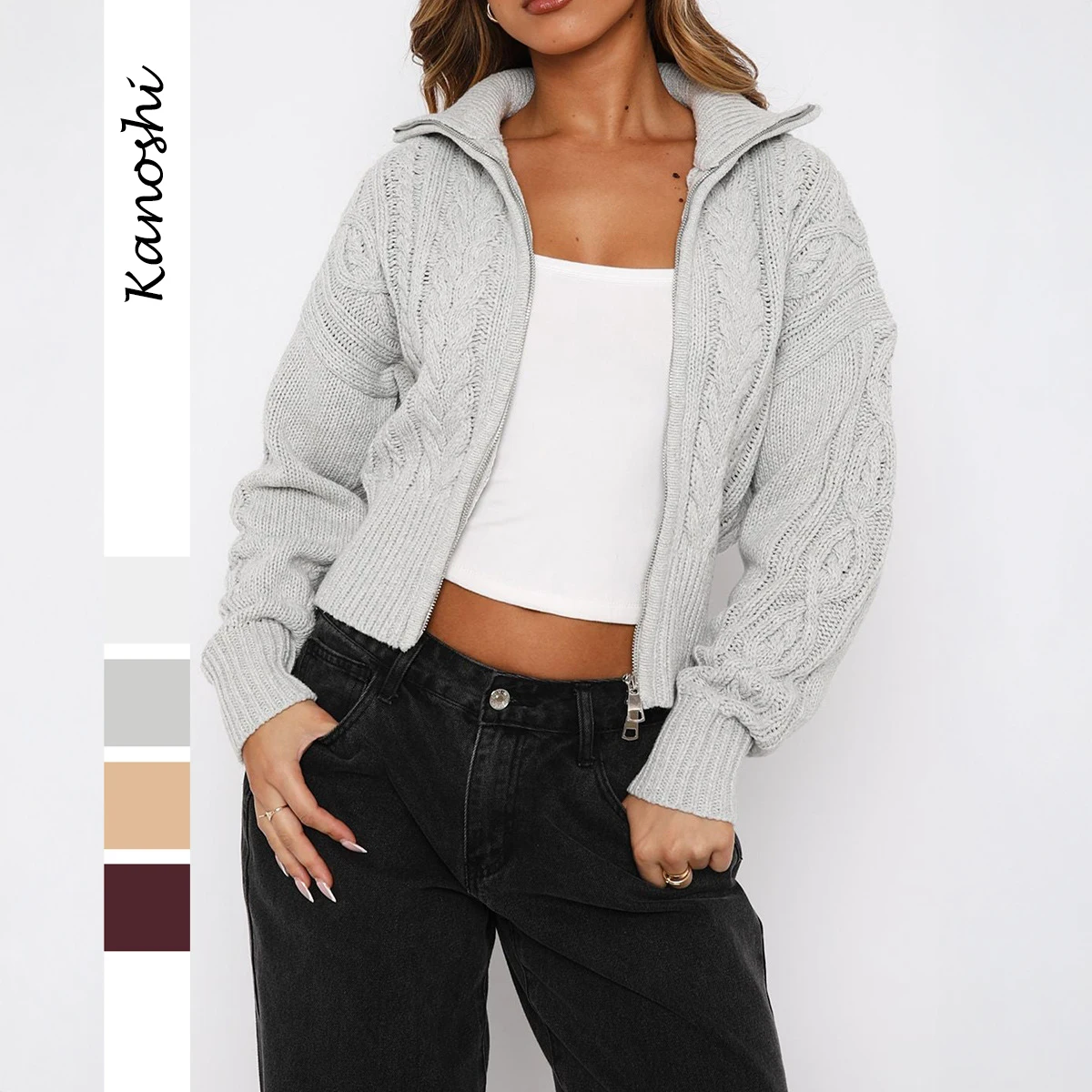 Women's Cropped Knit Cardigan Stand Collar Zip Up Fall Winter Chunky Short Sweater Coat
