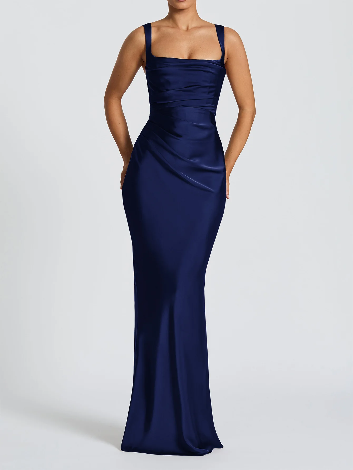 Women's Sleeveless Bodycon Corset Maxi Dress Spaghetti Strap Ruched Elegant Evening Wedding Guest Long Formal Dresses