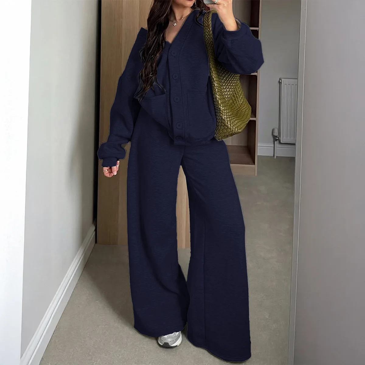 Sweatsuit 2 Pieces Sweatshirts and Pant Long Sleeve Button Up with Pockets Outfits Set