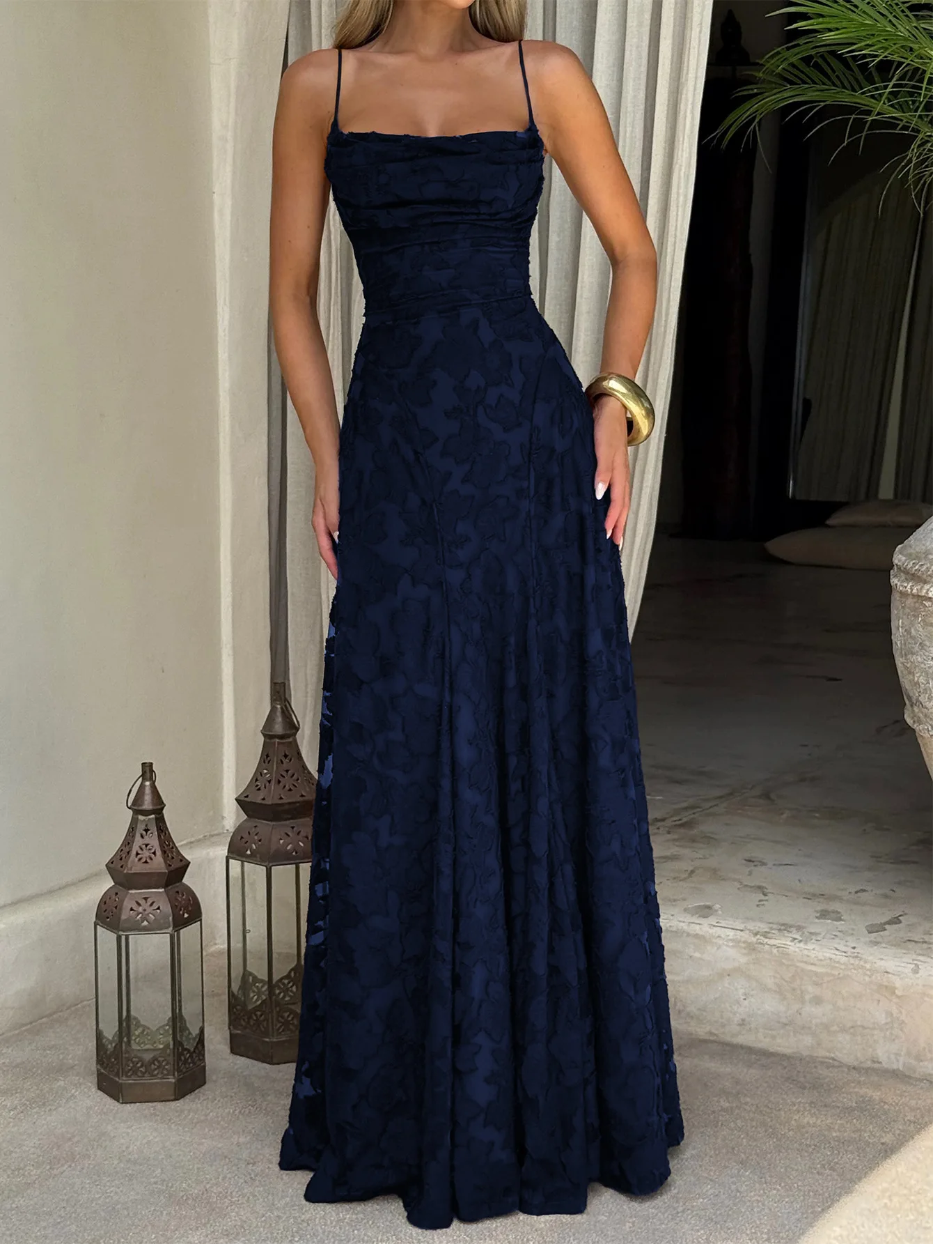 Women's Maxi Dresses Wedding Guest Dress A-Line Long Square Neck Backless Sling for Beach Wedding Party
