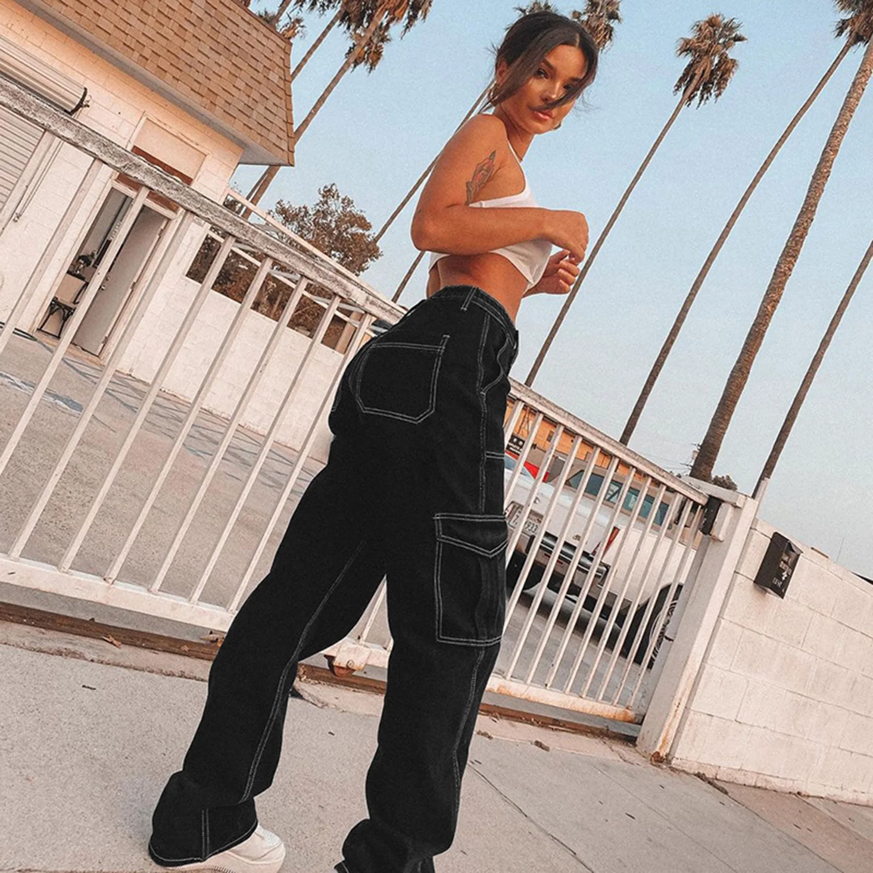 Women's Retro Casual Loose Summer Work Pants High Waist Breathable Cargo Design Plus Size Wholesale Street Wear Fashion