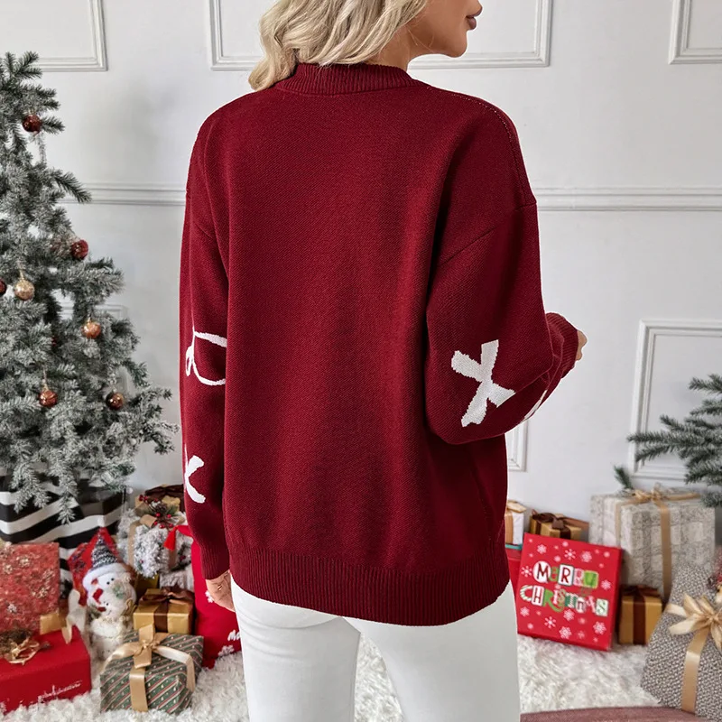 Fall Long Sleeve Pullover Sweaters for Women 2026 Trendy Crewneck Casual Cute Bow Knit Christmas Sweater