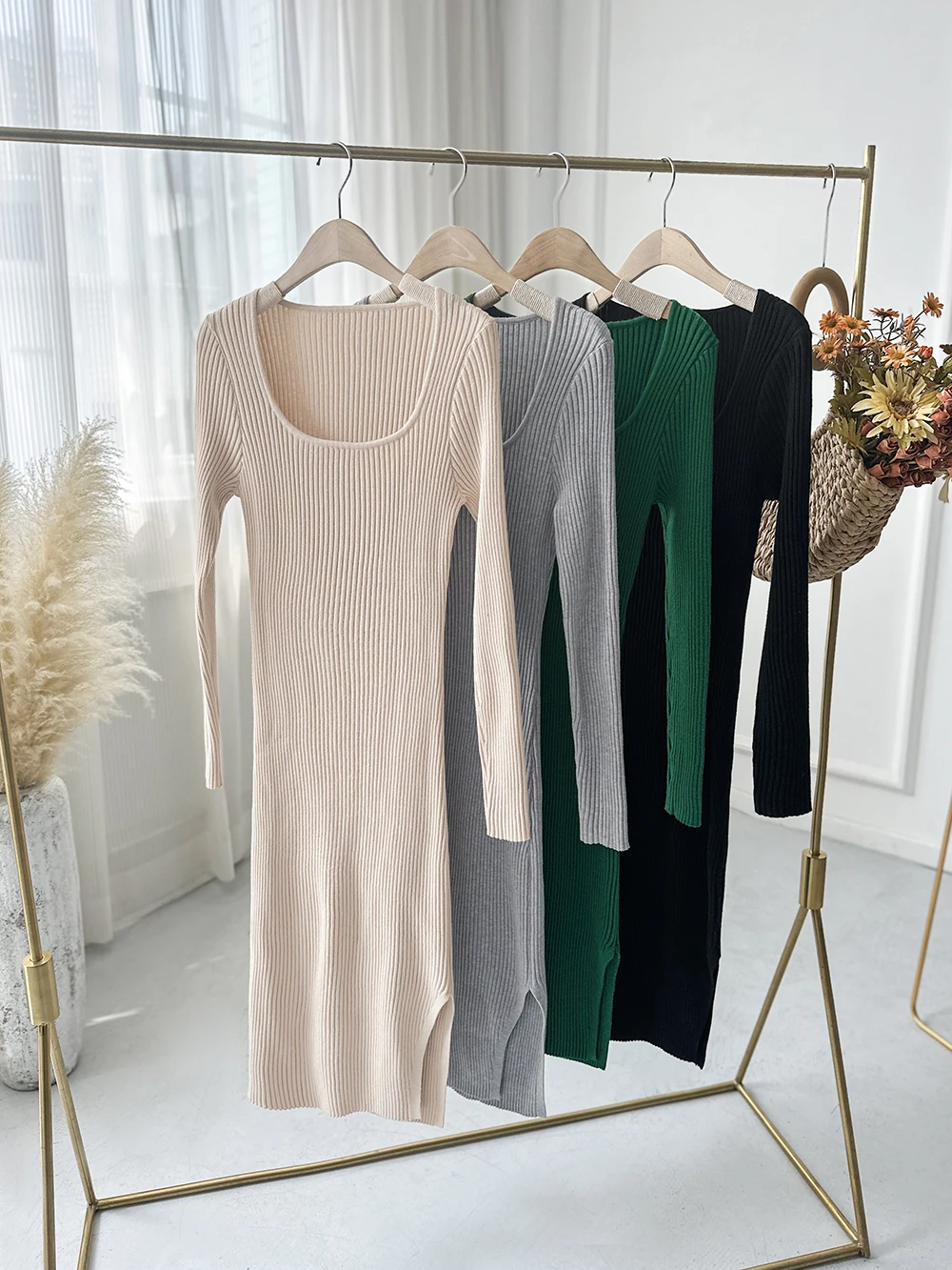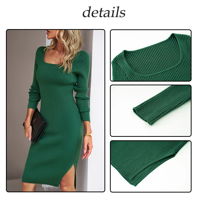 Wholesale Sweater Knitted Dresses Winter Women square Neck Midi Dress for Women Fall 2026