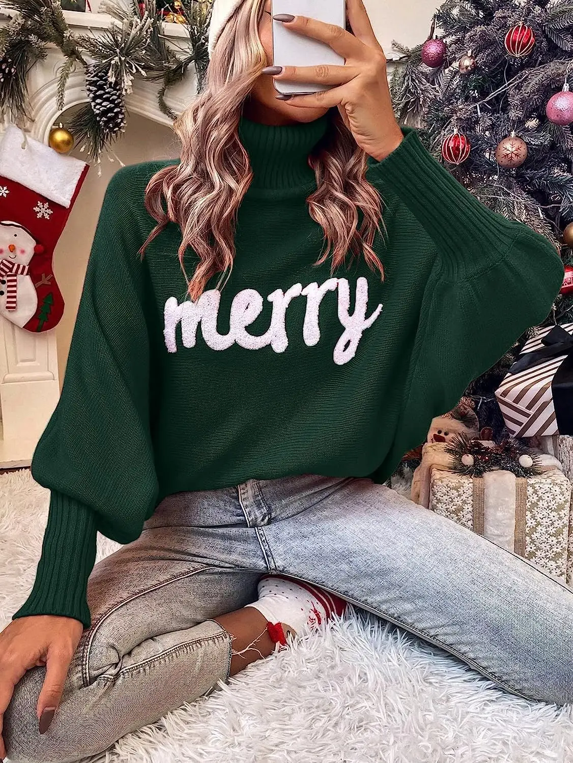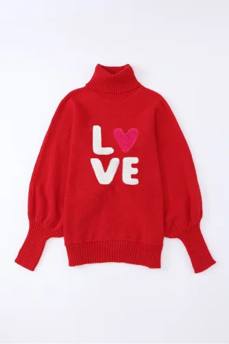 Women's High-Neck Pullover Knitted Woolen Sweater Winter Christmas Merry Letter Embroidered Wholesale