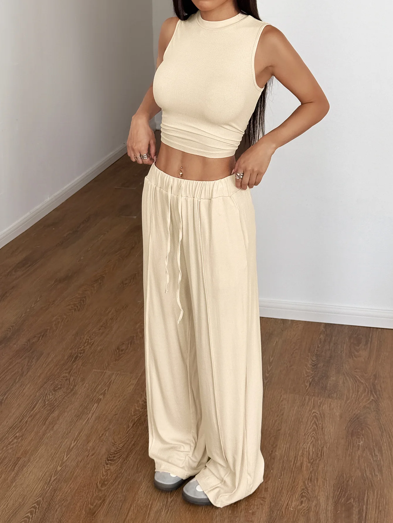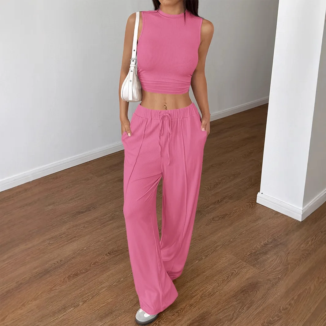 Summer 2 piece set women Casual Two Piece pants Set Sleeveless Tank Top Drawstring Long Pant Ladies casual outfit