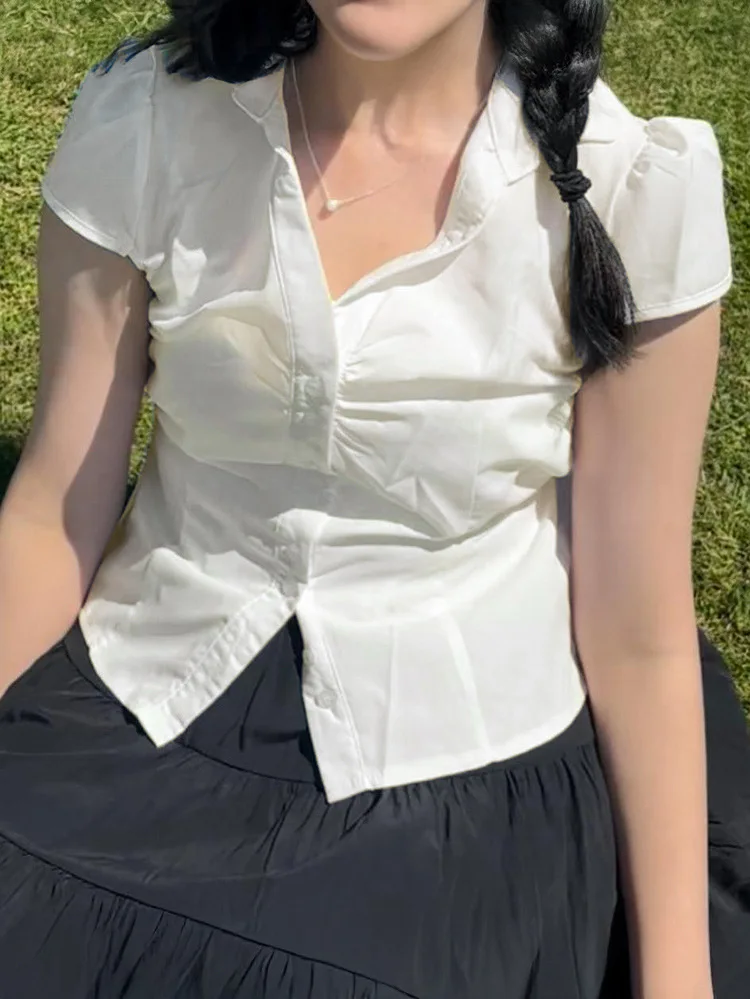 ZYHT 82024 White Blouse with Ruffled Cap Sleeves V-Neck Blouses Et Chemises Pour Femmes White Blouses for Women