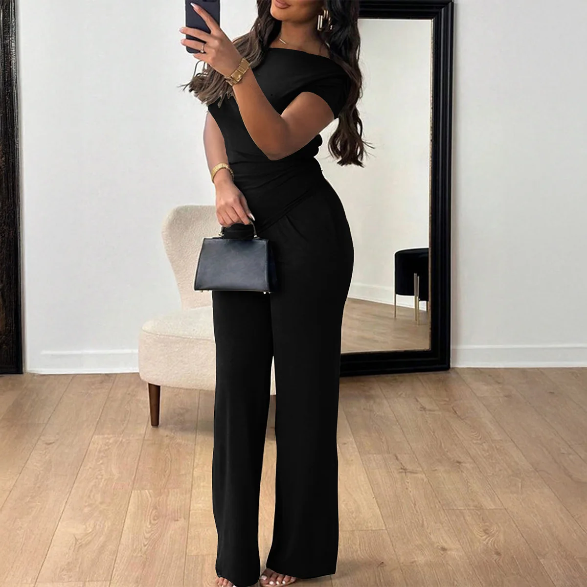 Elegant summer short sleeve long pants suit for women 2026 ladies two piece sets