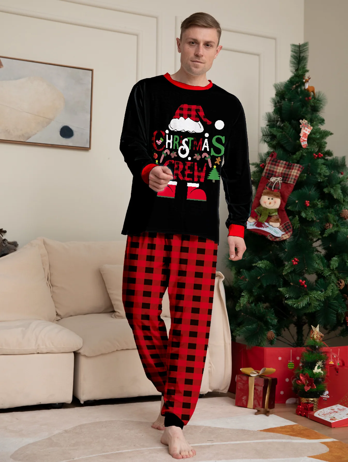 Wholesale Deer Letters Printed Cotton Crew Pajamas Set Matching Family Christmas Pajamas Elastic Waist family pajamas for Winter
