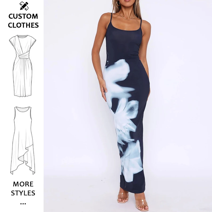Women's Sexy Floral Print Maxi Dress Spaghetti Strap Backless Slim Flit Bodycon Long Dresses Party Night Going Out Outfits