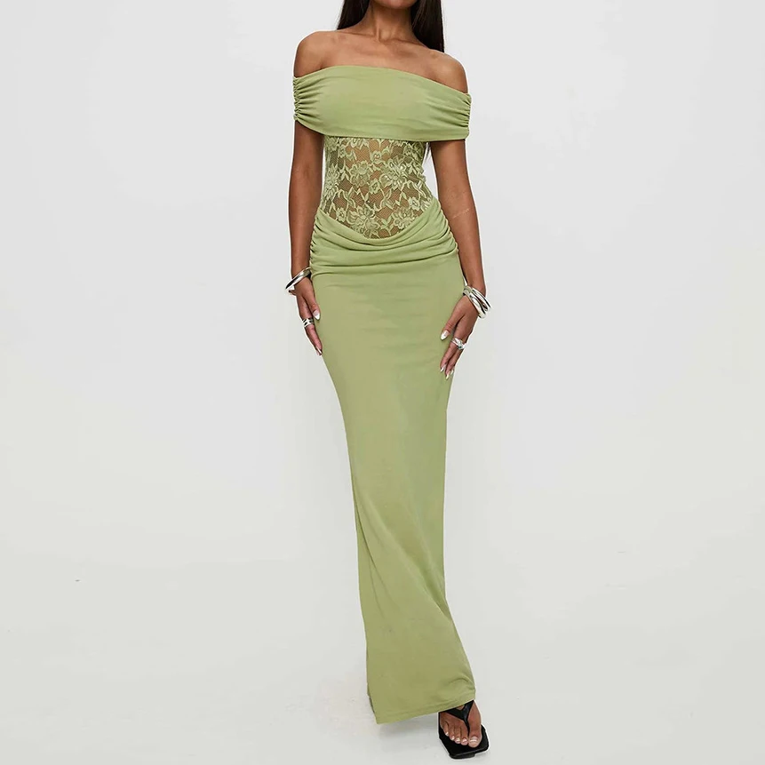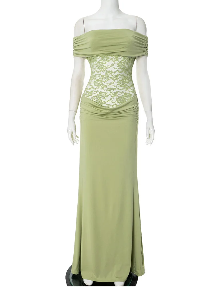 Elegant Women's Dress Simple Lace Strapless Short Sleeve Polyester See-Through Mesh Romantic Casual Western Style