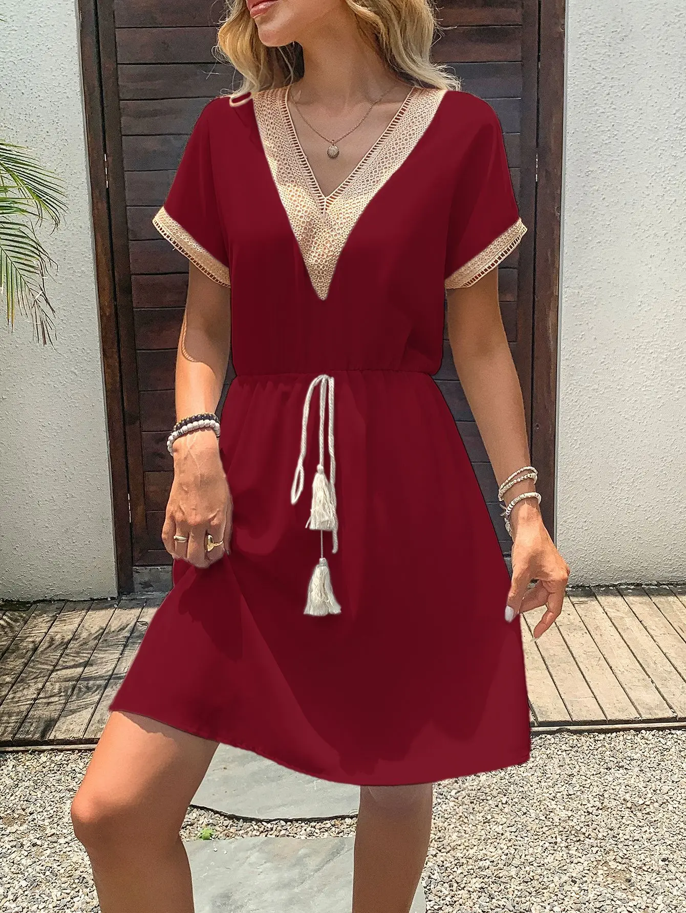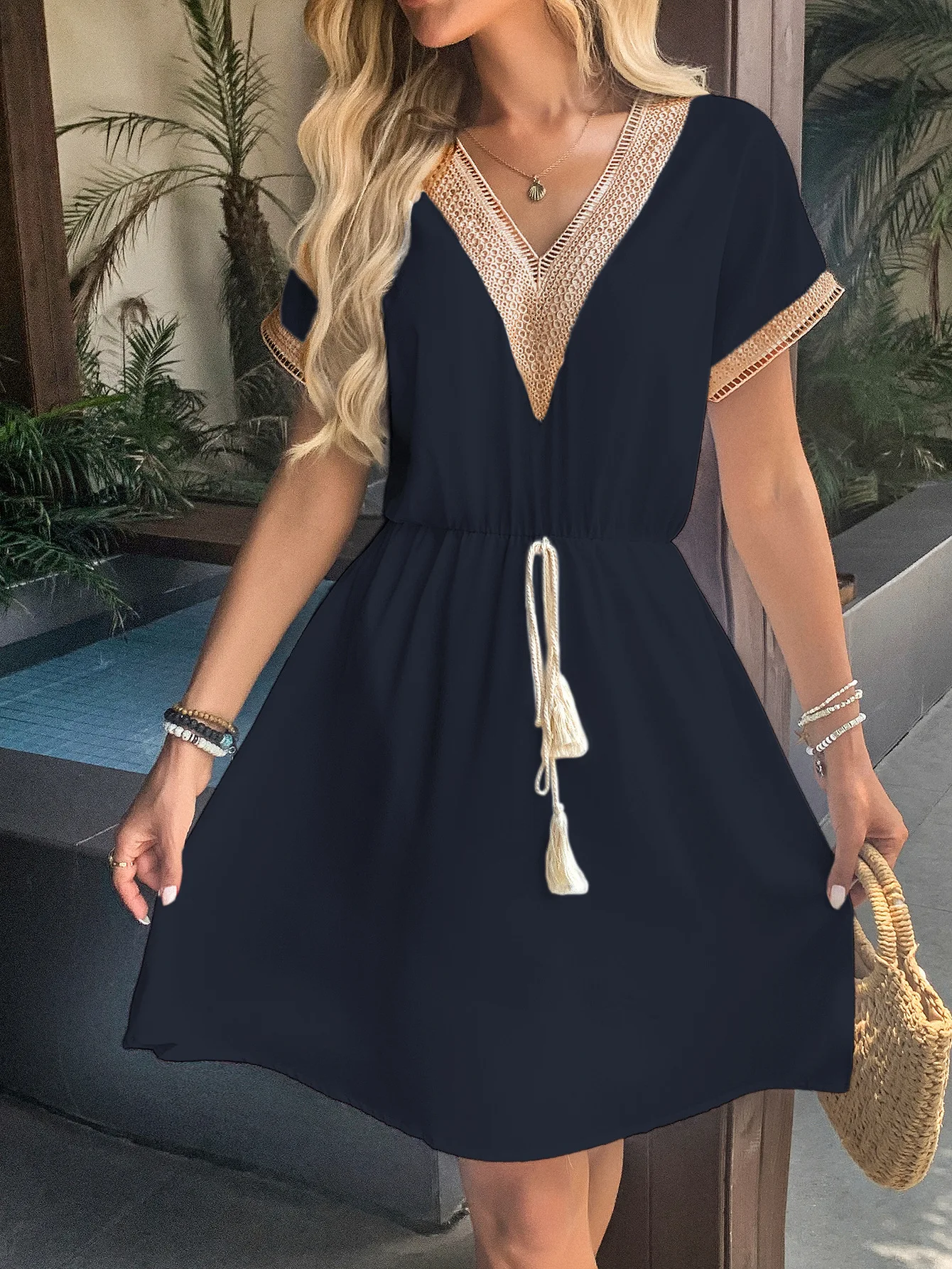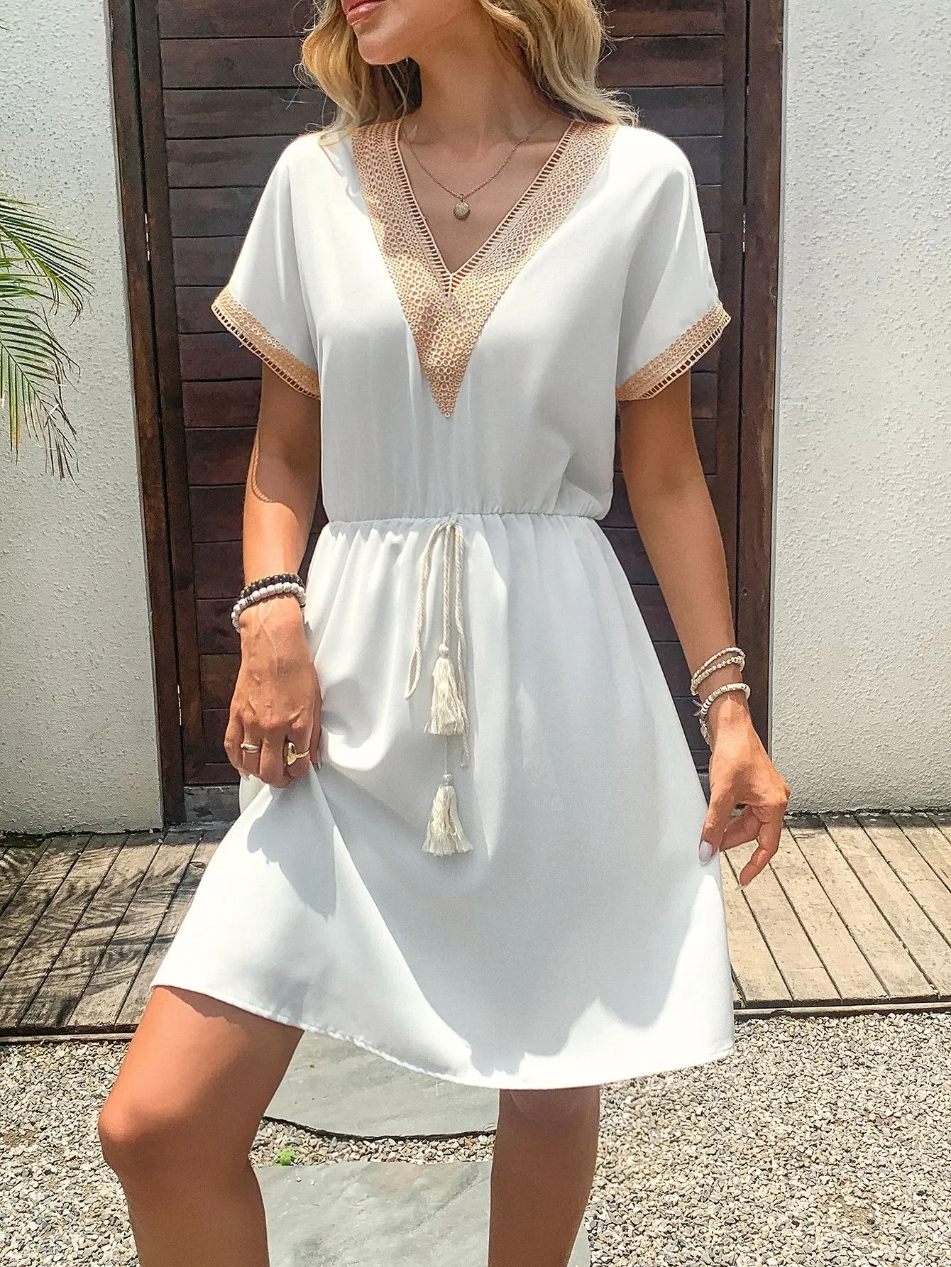 Women's short Sleeve A Line Dress V Neck Vacation Short casual Dresses