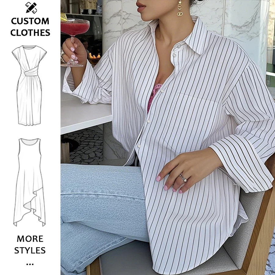Women Oversized Button Down Shirts Office Drop Shoulder Blouse Long Sleeve Boyfriend Dress Shirt with Pockets