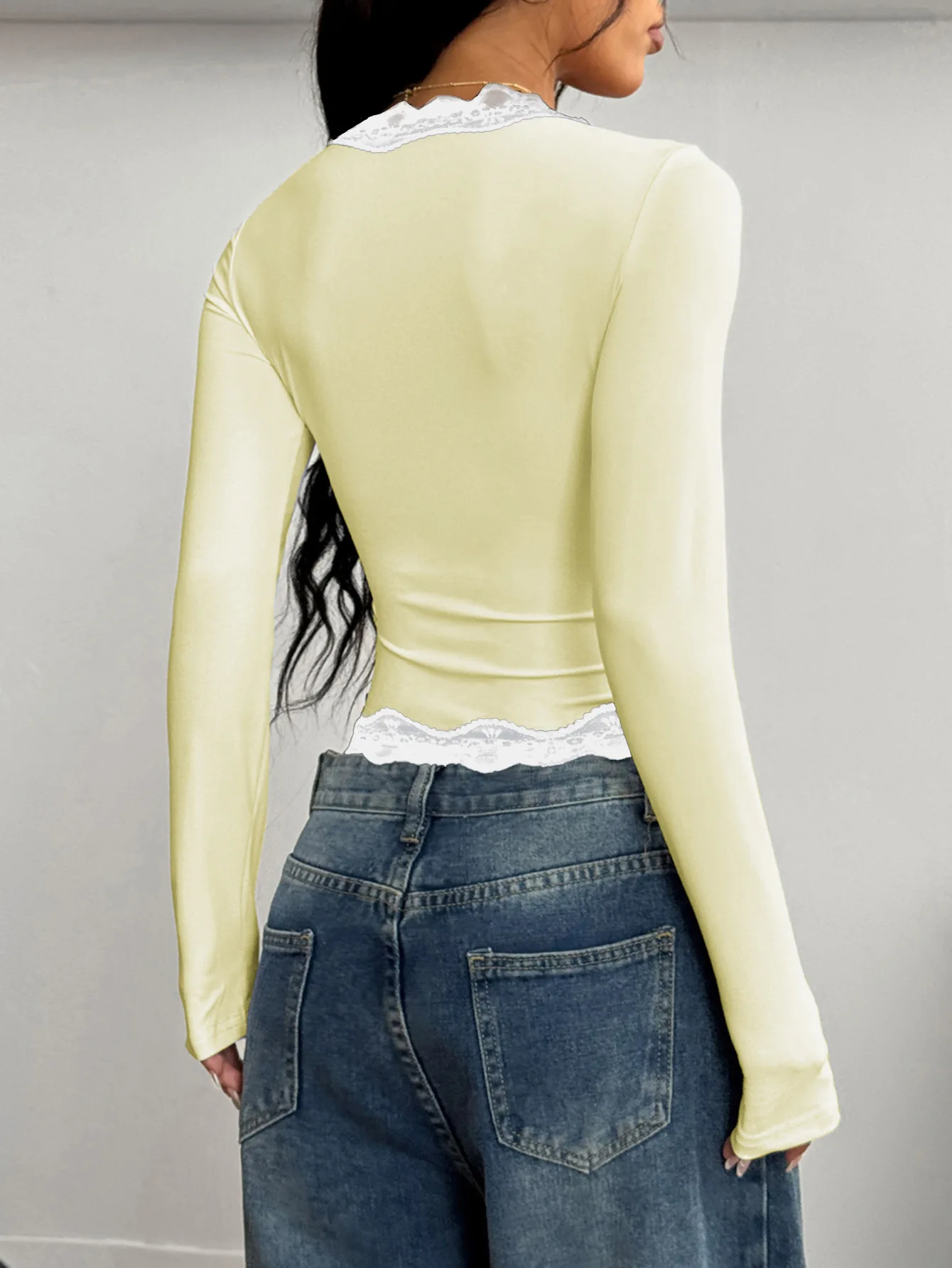 Sexy Lace Long Sleeve Shirts for Women V Neck Slim Fitted Y2K Trendy Fall Going Out Tops Clothing
