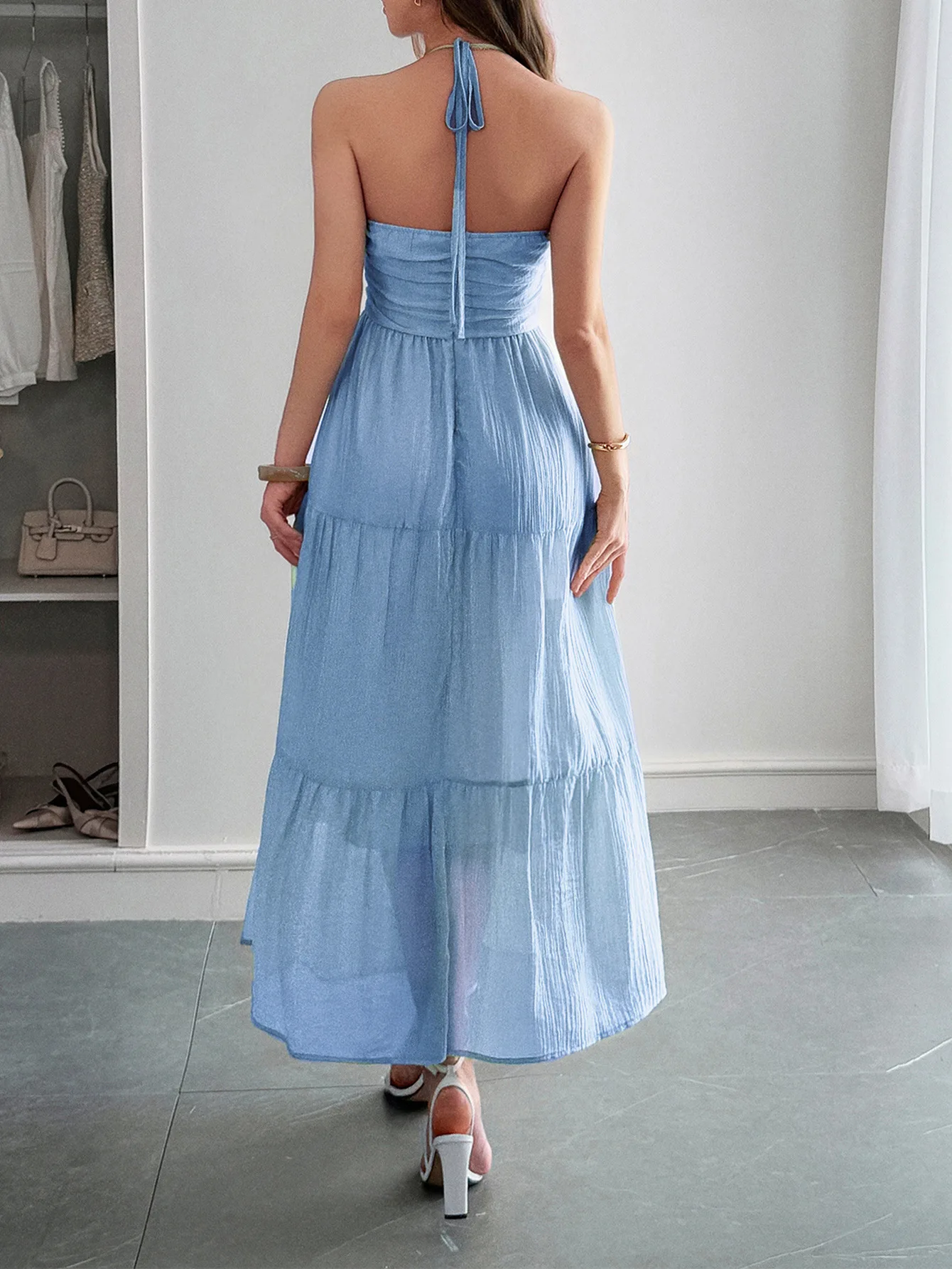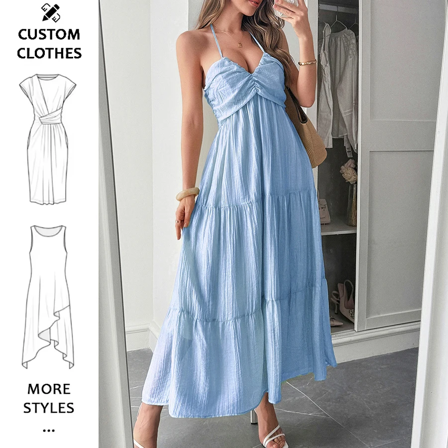 Factory Price High Quality Y2K Style Ladies Beach Newly Designed Halter V-Neck Backless Tie Back Casual Summer Holidays Dress