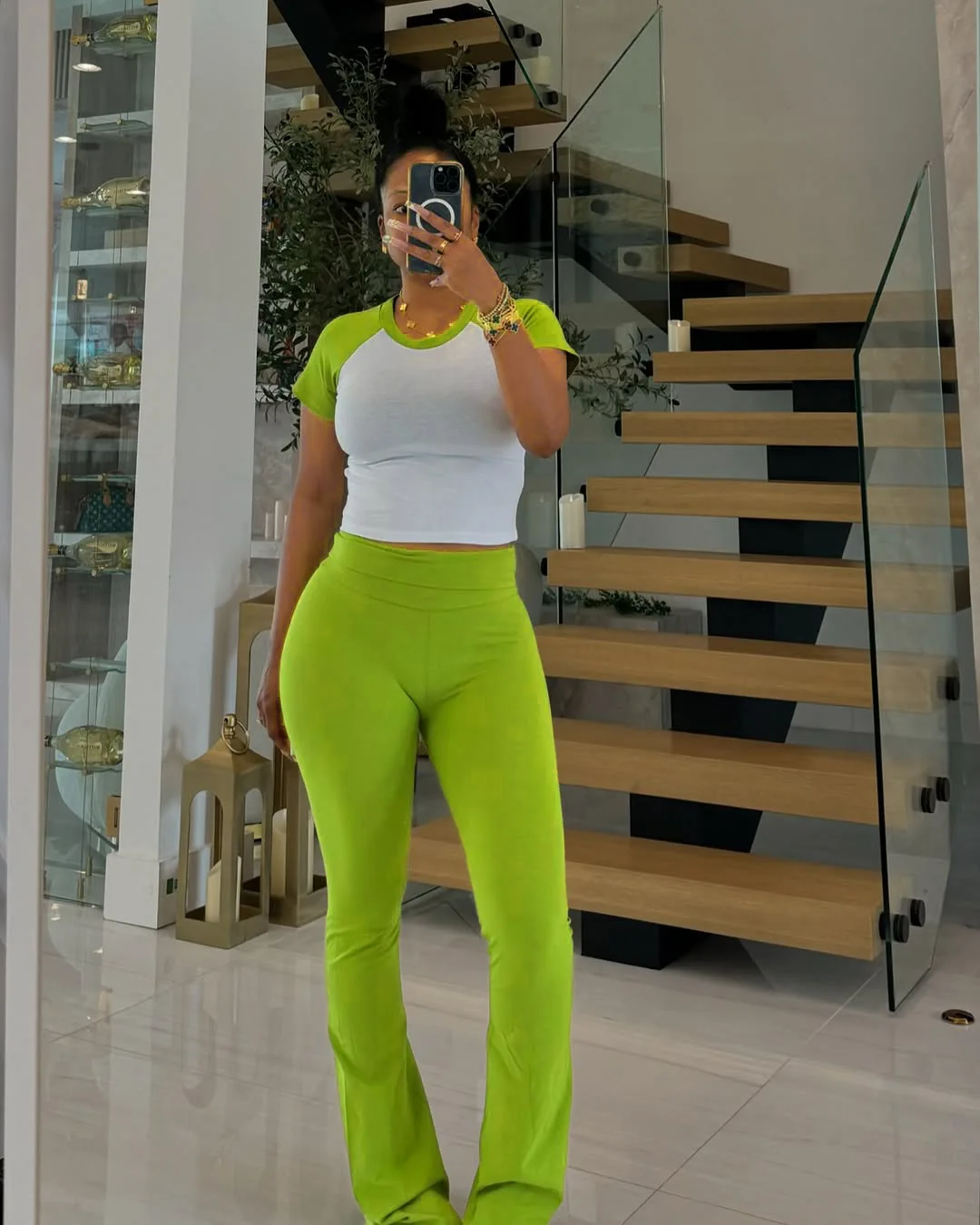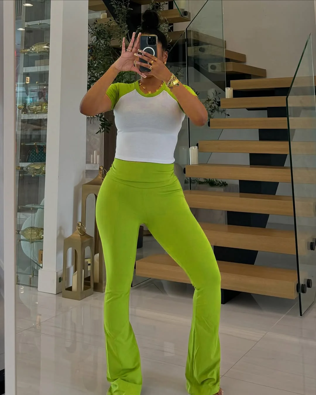 Summer 2026 New Women Two Piece Pants Set Contrast Color Short Sleeve Leisure Tracksuit Sport Yoga 2 Piece Pants Set