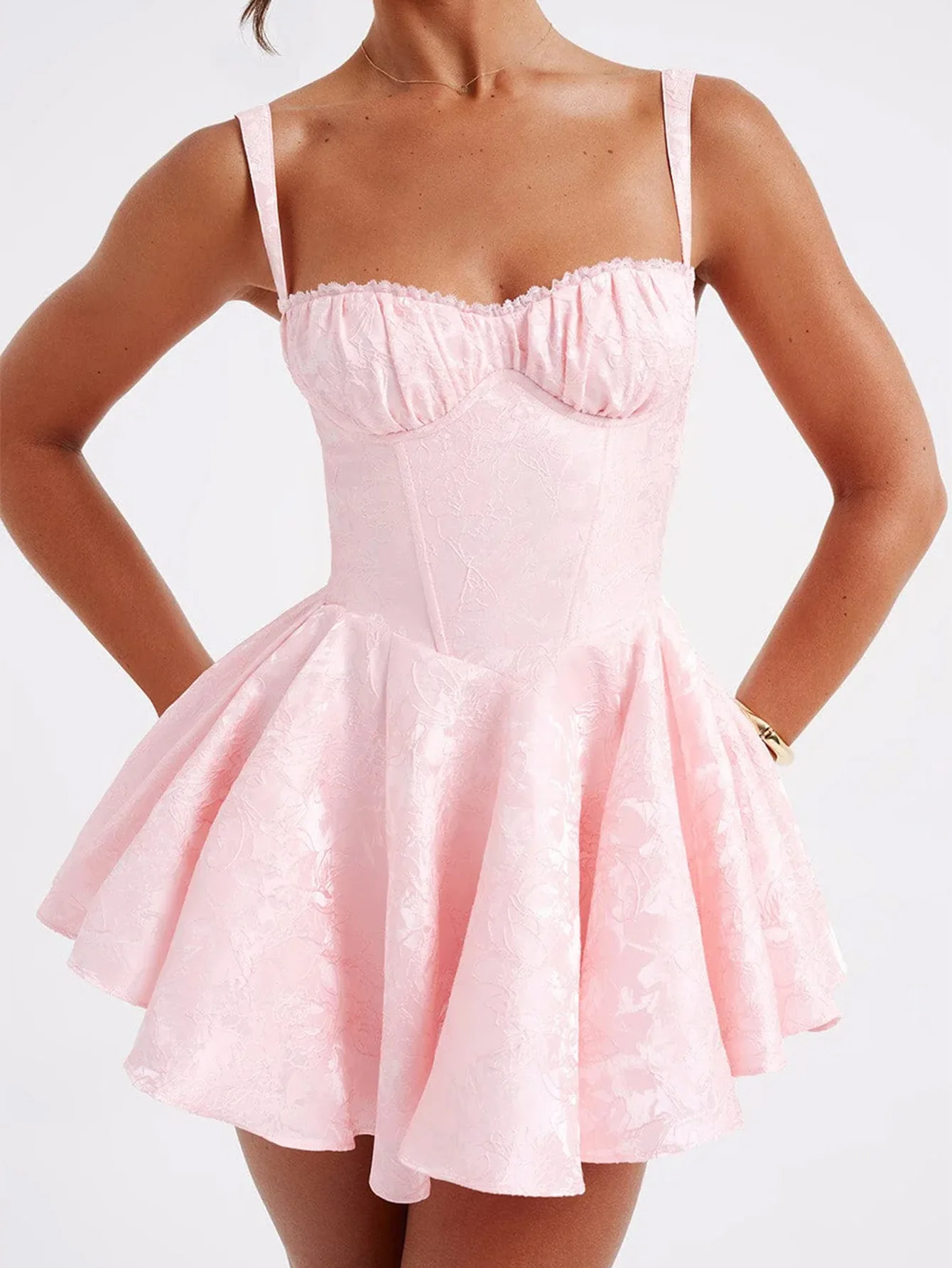 Sexy Spaghetti Strap Jacquard Girl's Summer White Short Dress Back Big Knot Elegant Women Casual Dress