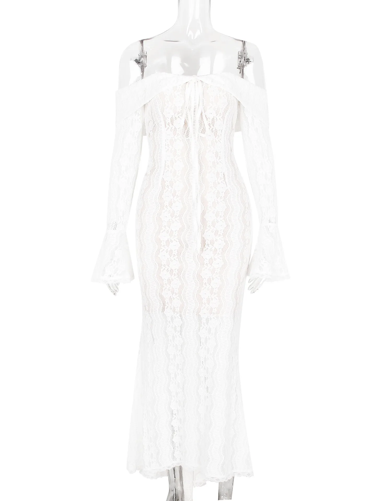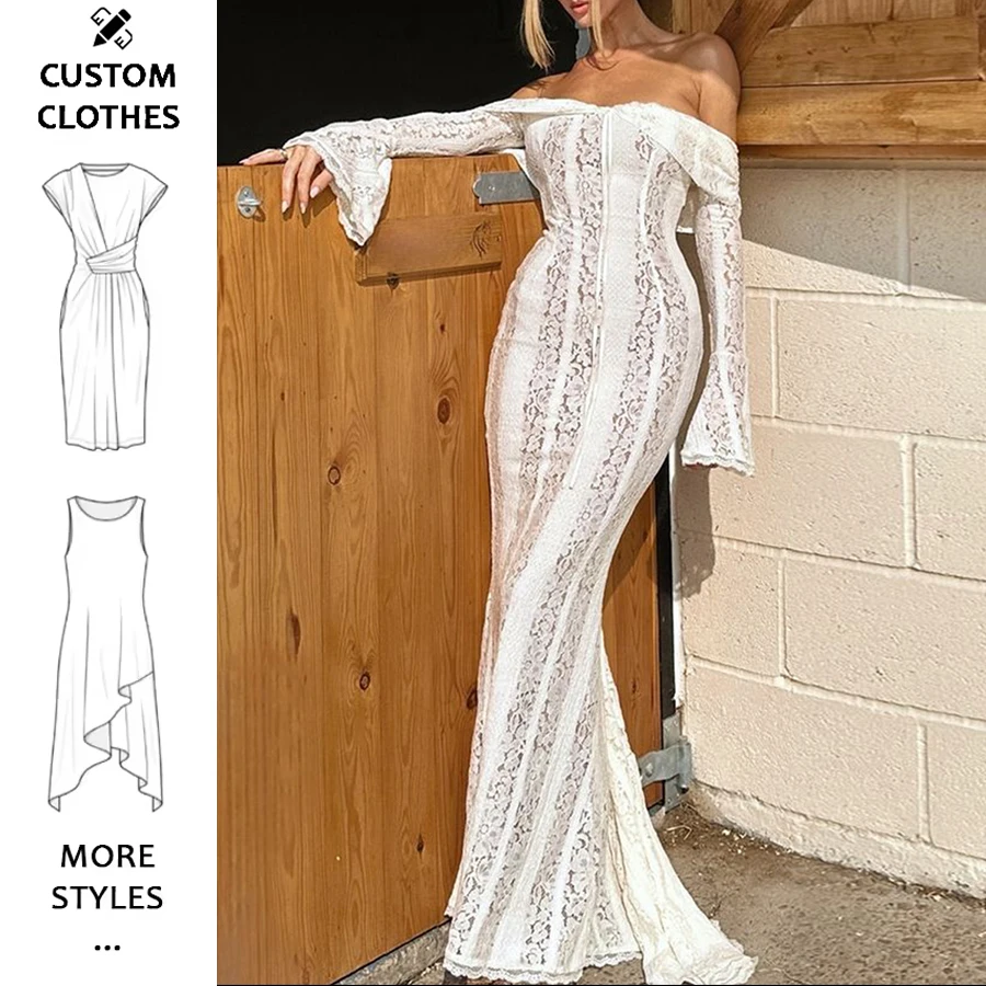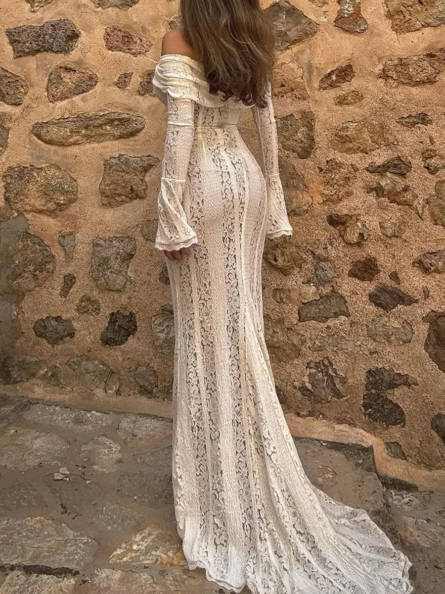 Elegant dresses for women long sleeve off shoulder lace dress bodycon mermaid slim long dress for party