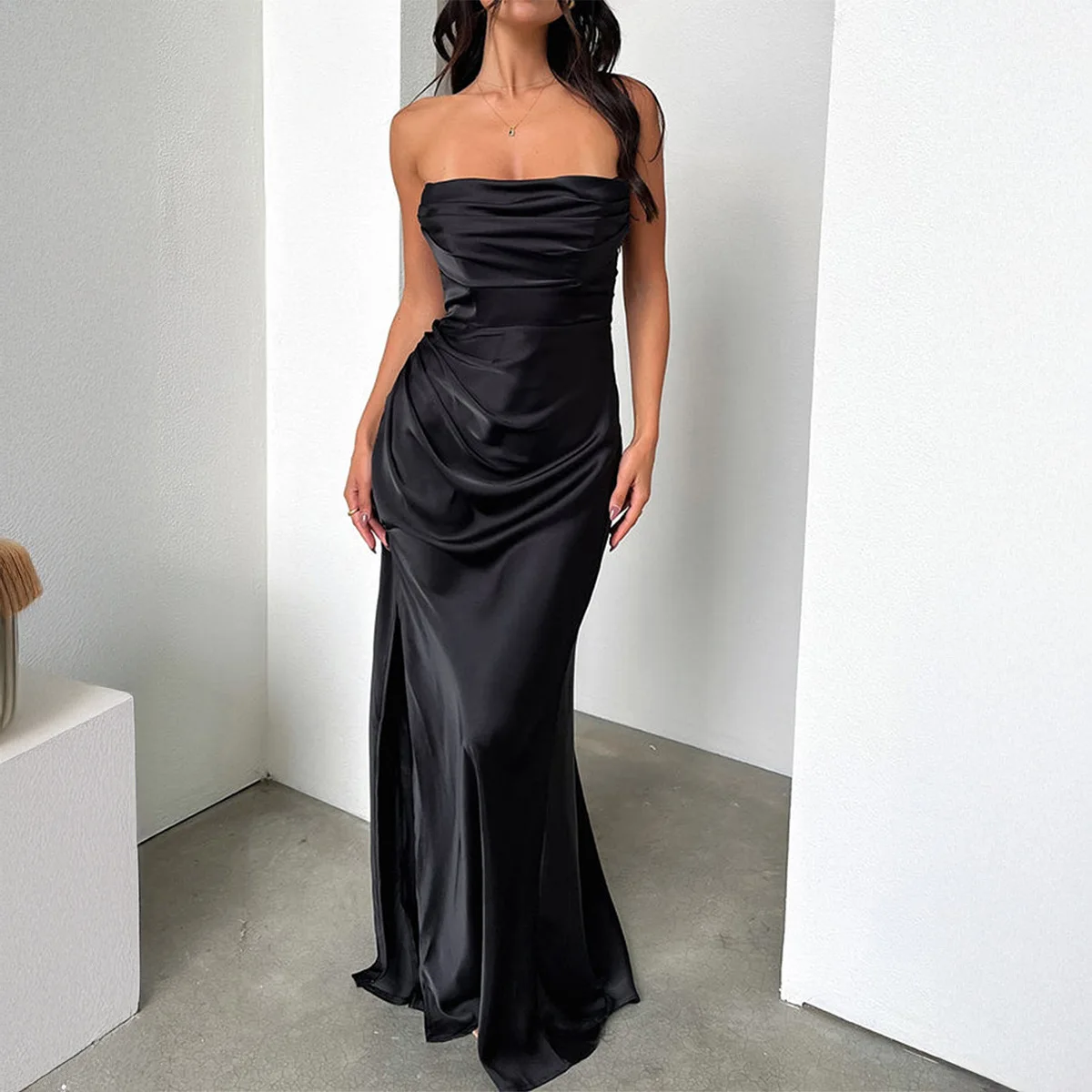 Women's Sexy Strapless Tube High Slit Ruched Party Cocktail Maxi Dress for women