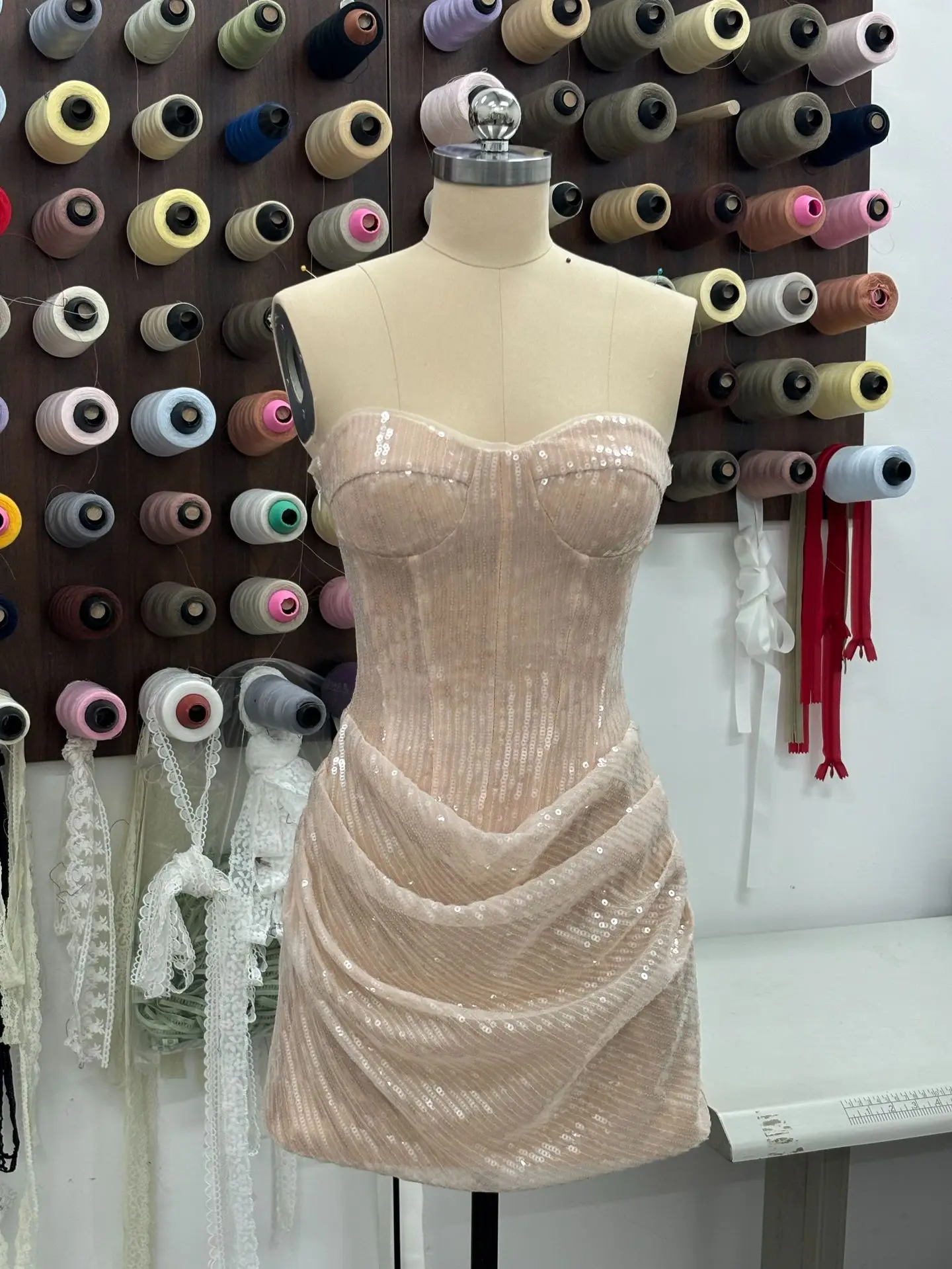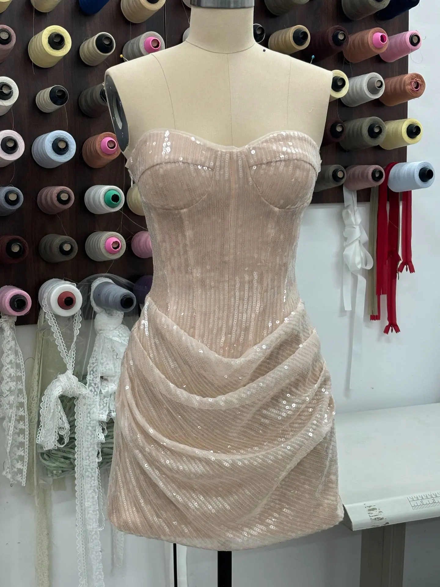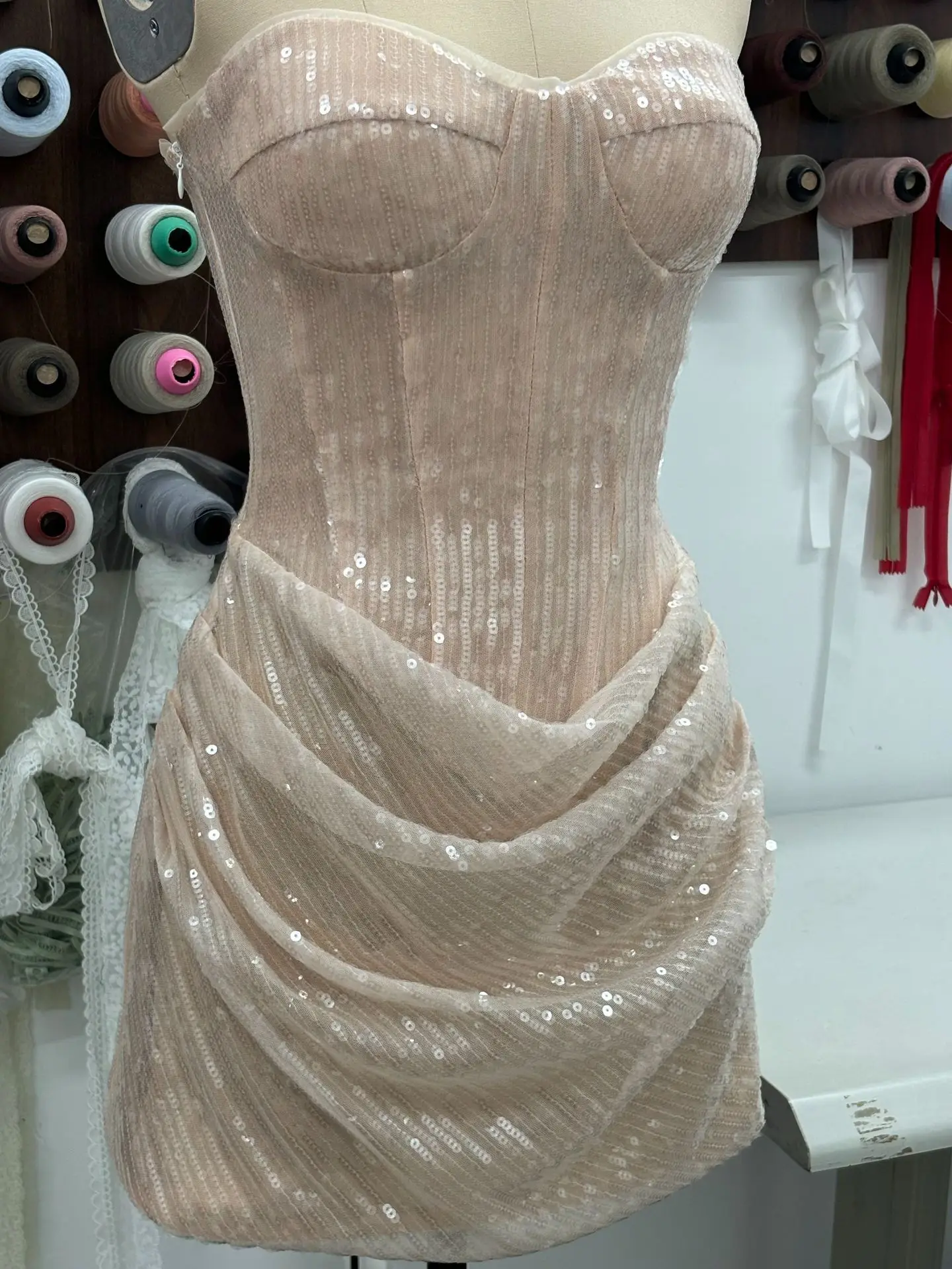 European and American Sexy Nightclub Women's Mini Dress Girl Strapless Backless Slim Fit Luxury Sequined Cross-border New