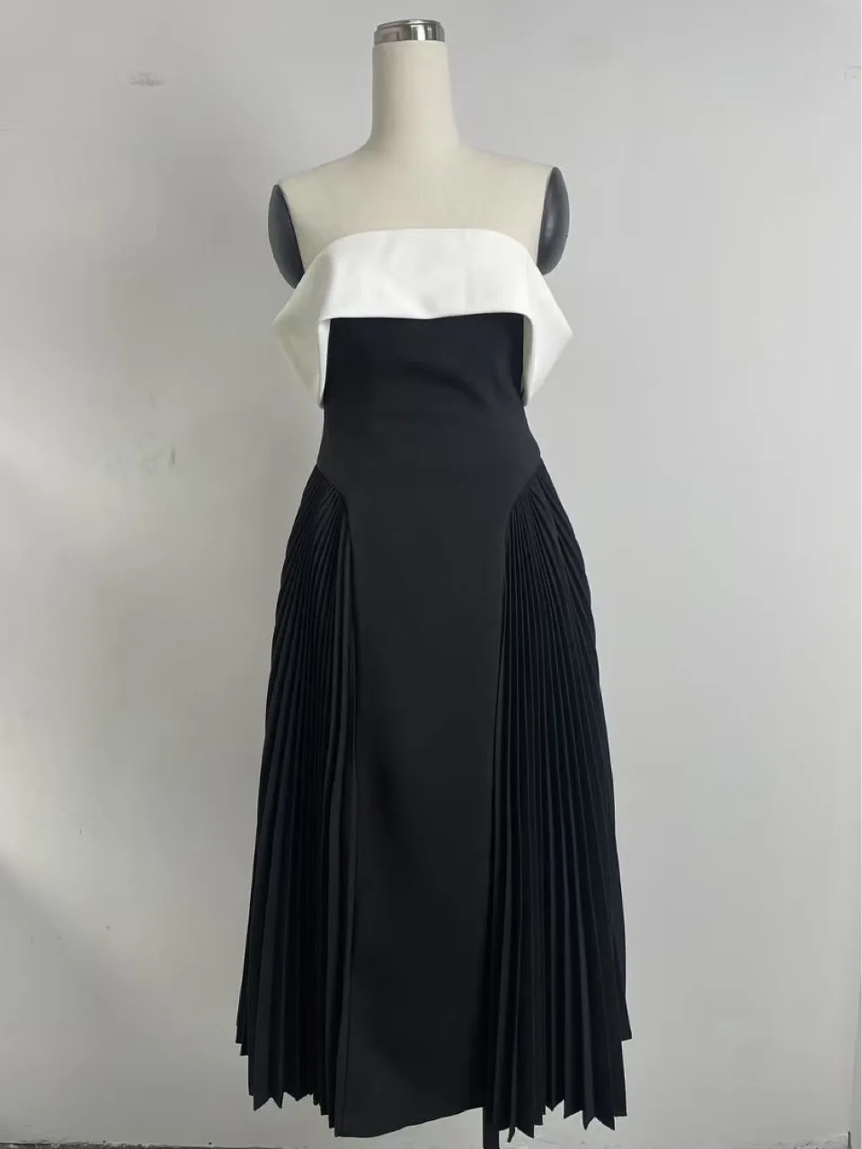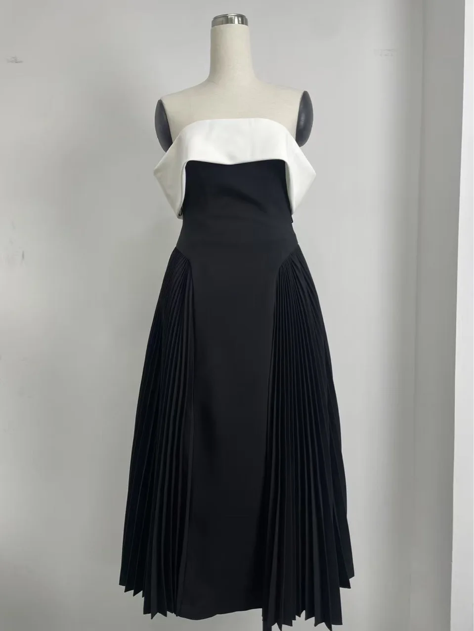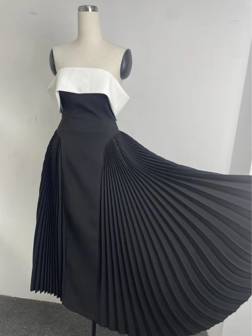 Factory Wholesale Ball Gown Dress Birthday & Evening Spaghetti Strap Contrast Color Pleated Slim Elegant Midi Party for Summer