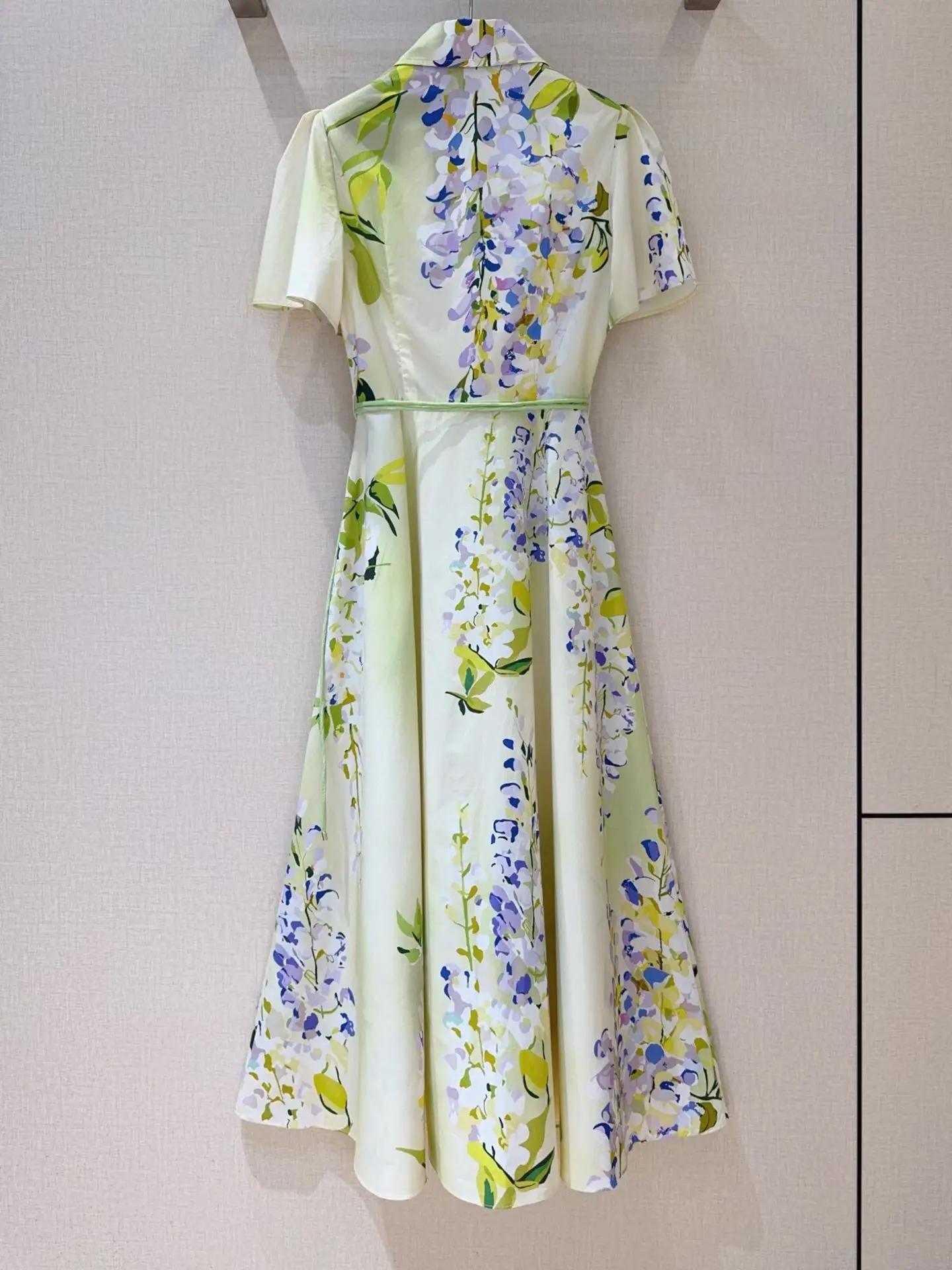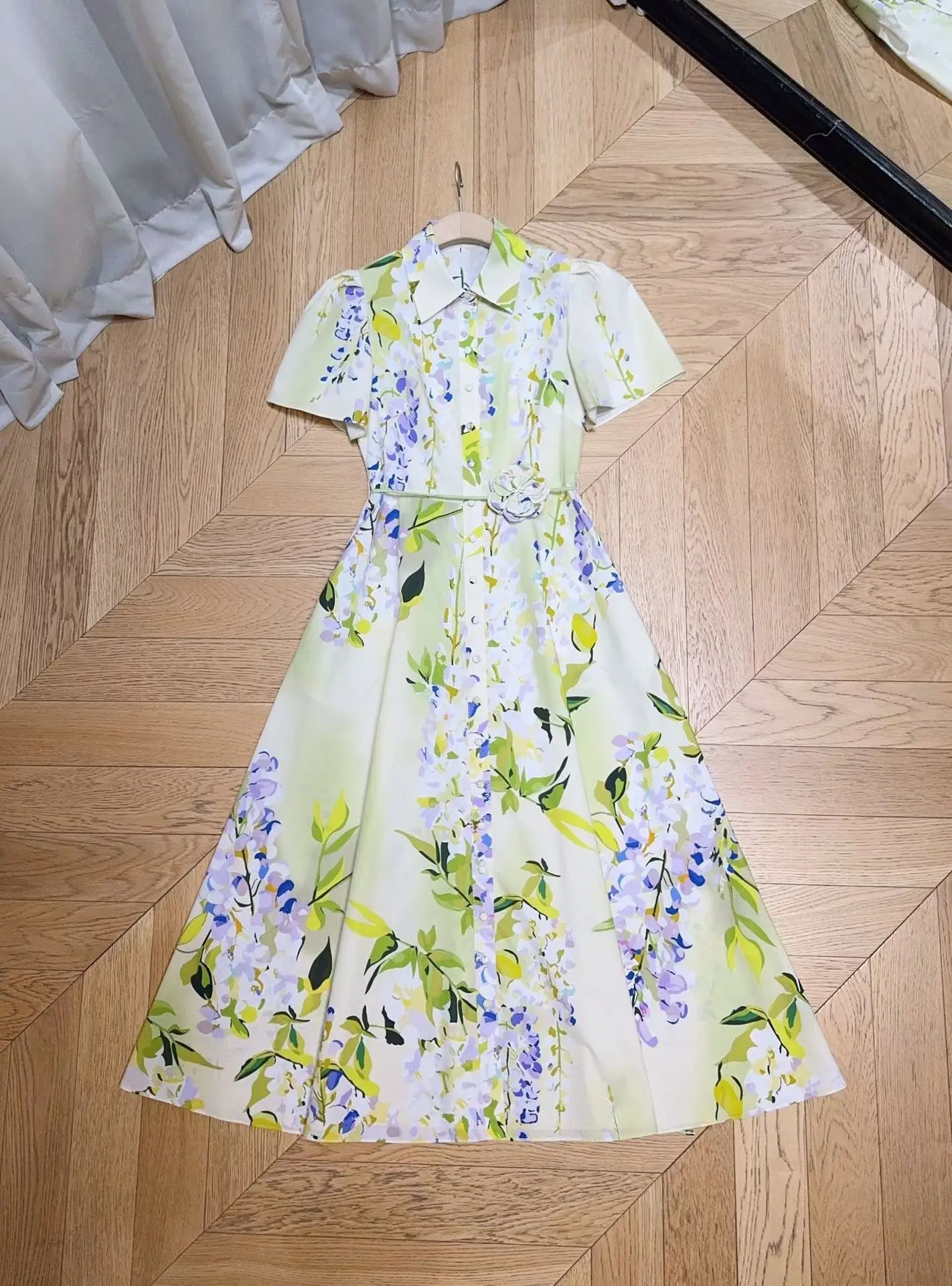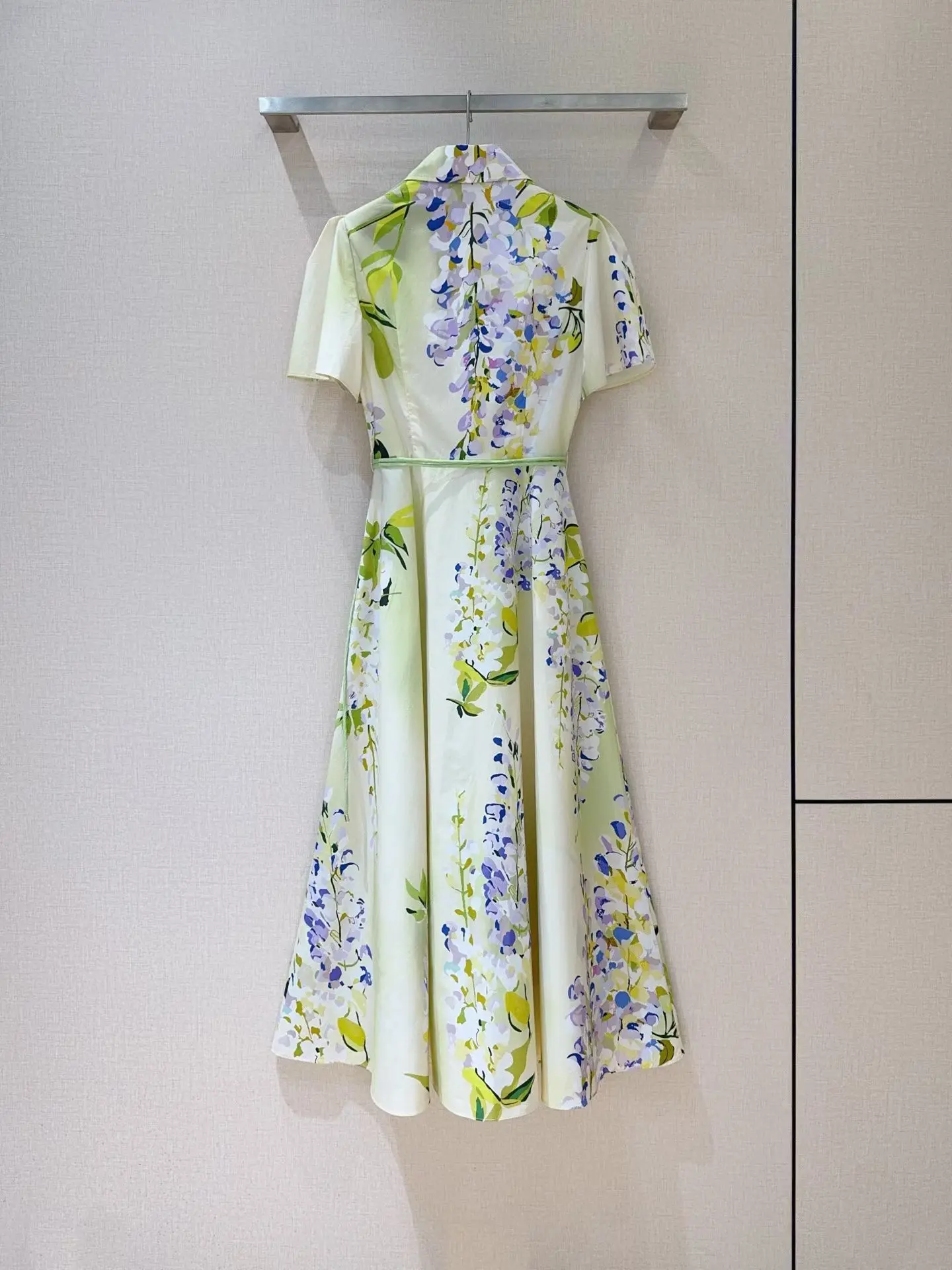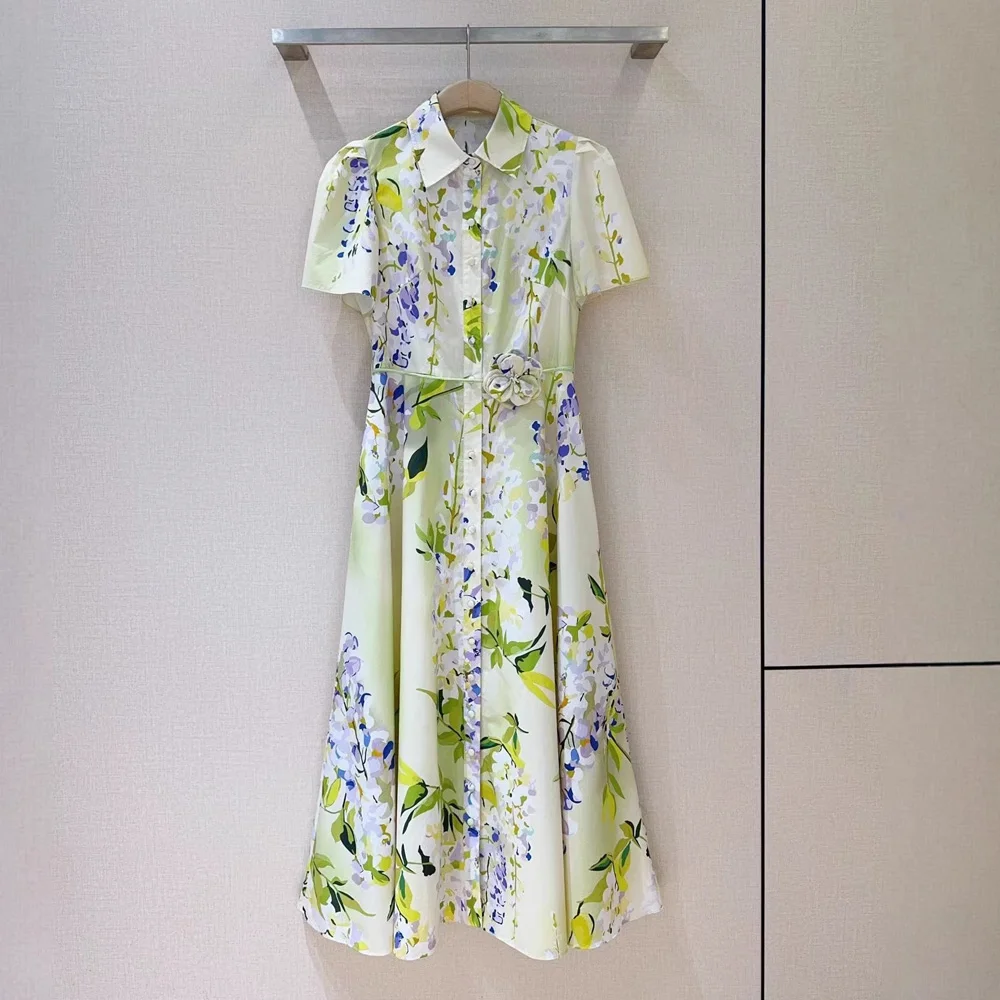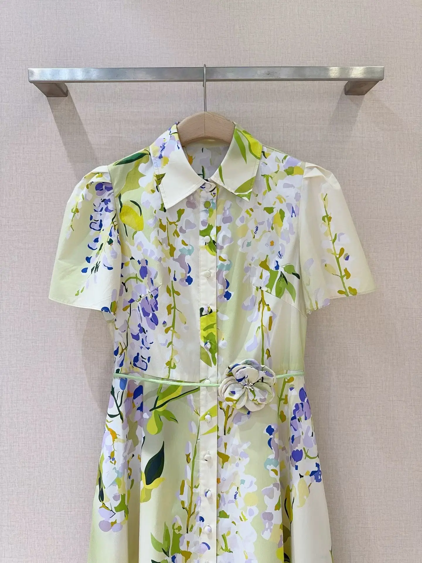 Factory Wholesale Designer Fashion 100% Cotton Dress Women Summer Flower Printed 3D Flower Belt Elegant Poplin Elegant Party