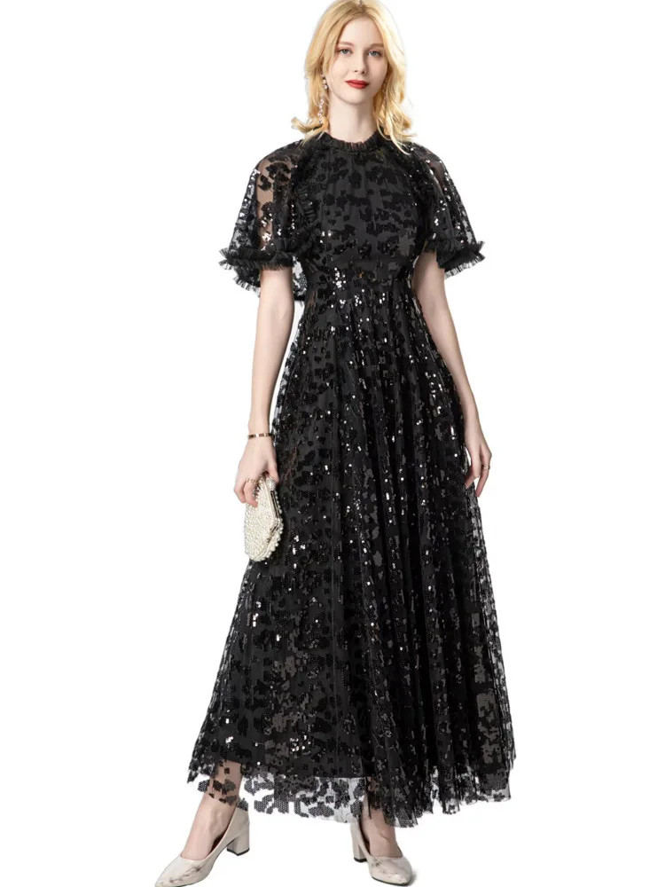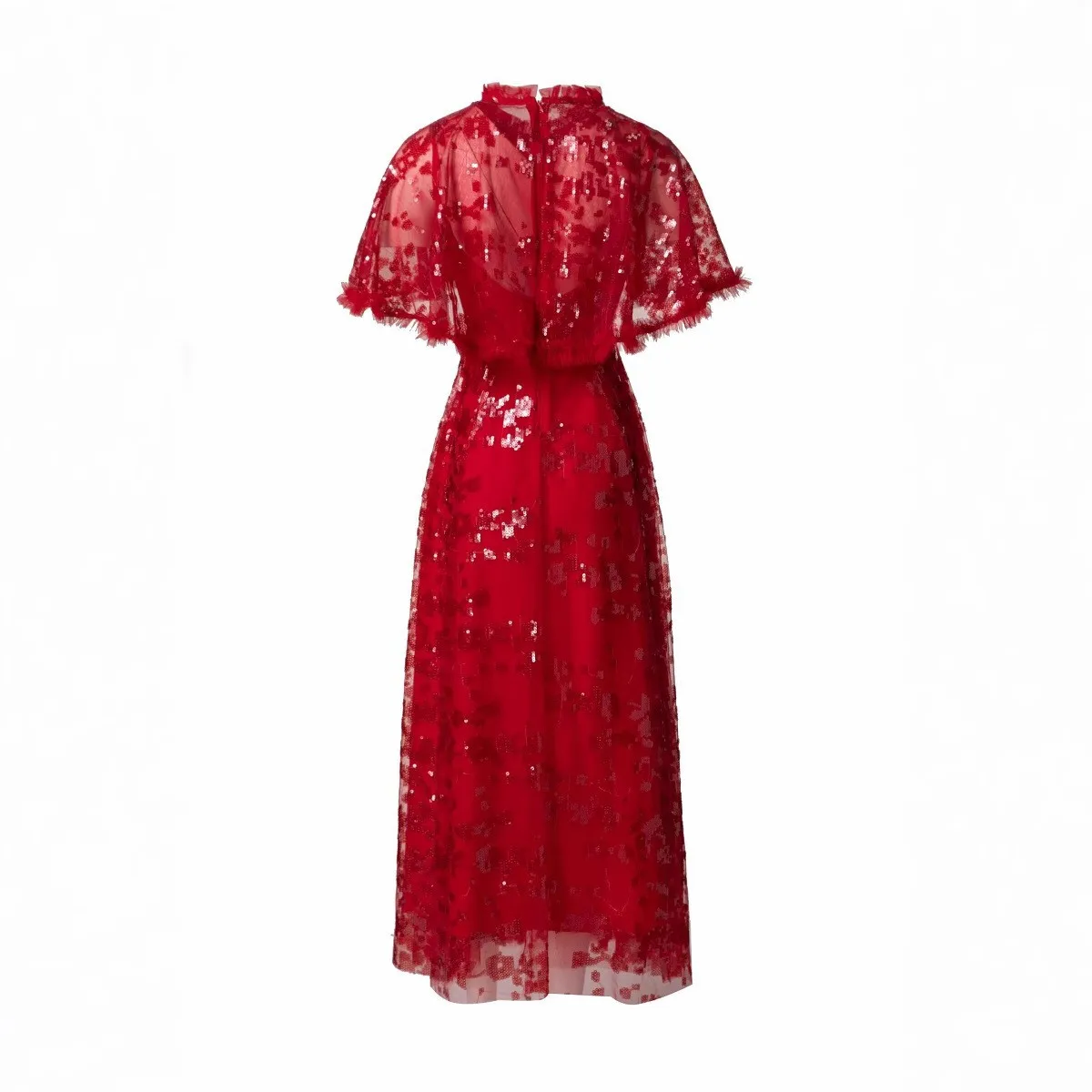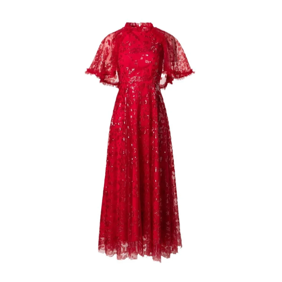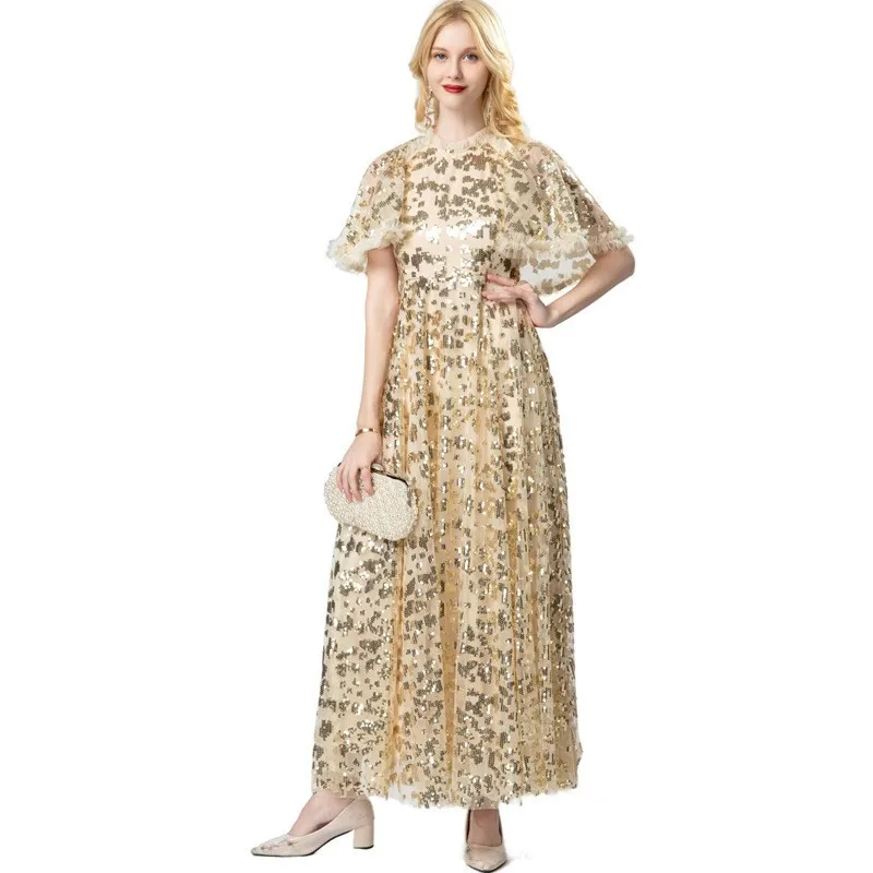 Factory Wholesale Lady Cape Poncho Gown Plus Size Long Summer Evening Party Maxi Dress Sequined Applique Flower Embroidery