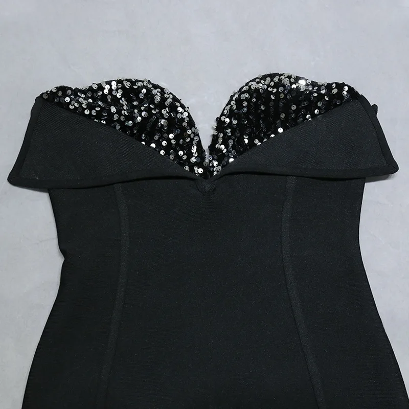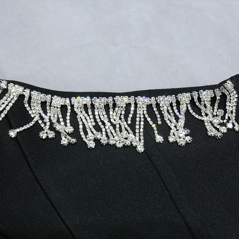 Factory Wholesale European American Autumn Elegant Sheath Dress Hot Drilling Slim Sexy Backless Black Midi Dinner Party Evening