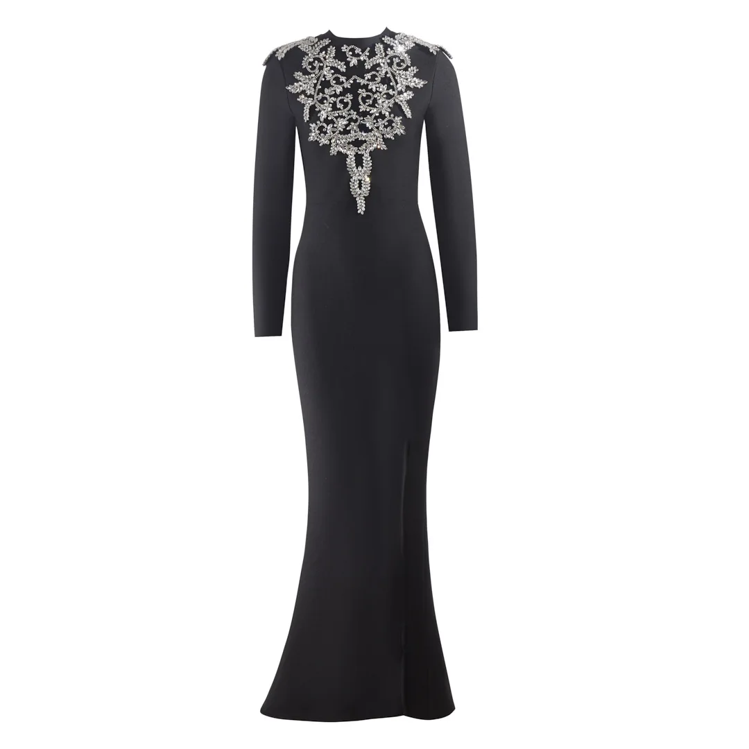 Factory Wholesale New Fashion Slim-fit Trumpet Dress Floor-Length Women Black High-end Diamond Design Women's Banquet Party