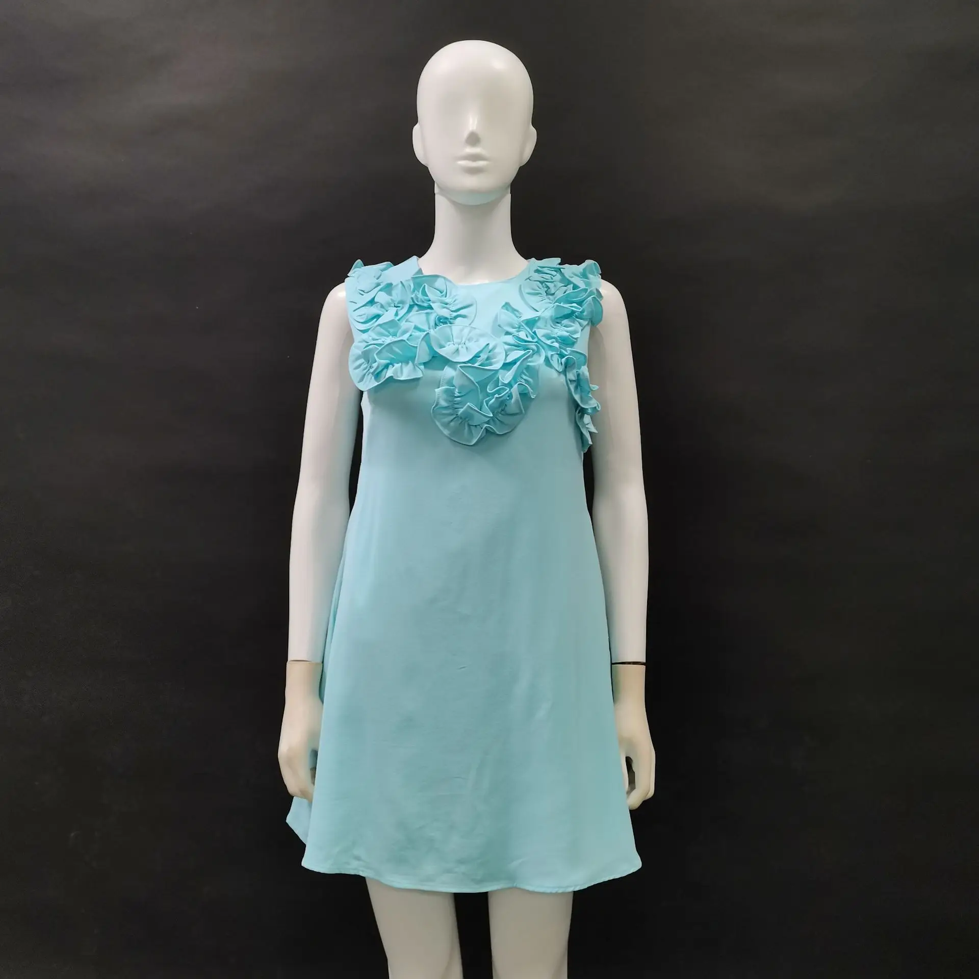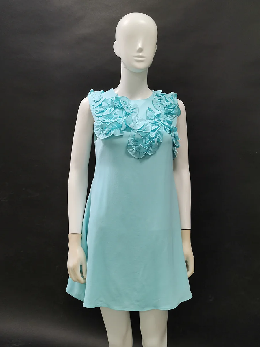 Vintage Fashion Elegant Neck Sleeveless Mini Dress New Three-dimensional Flower Collage Solid Color Slimming Casual Dress