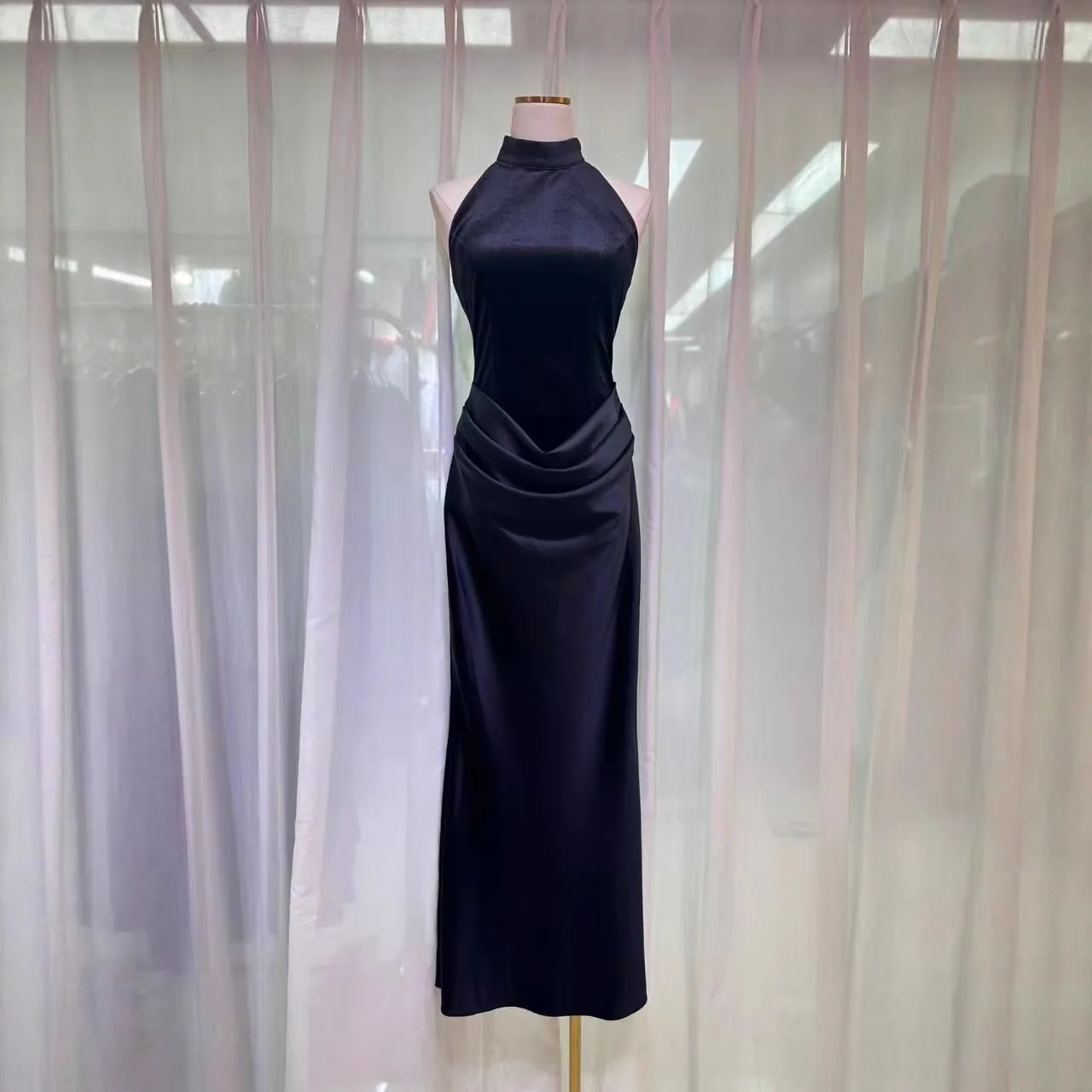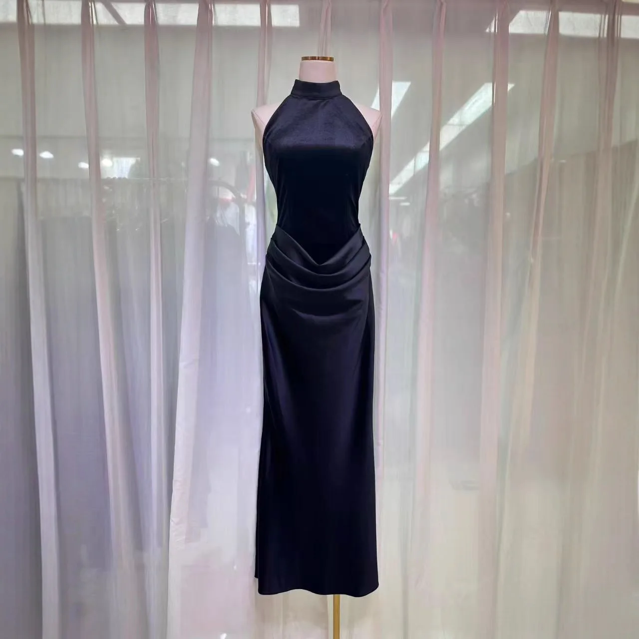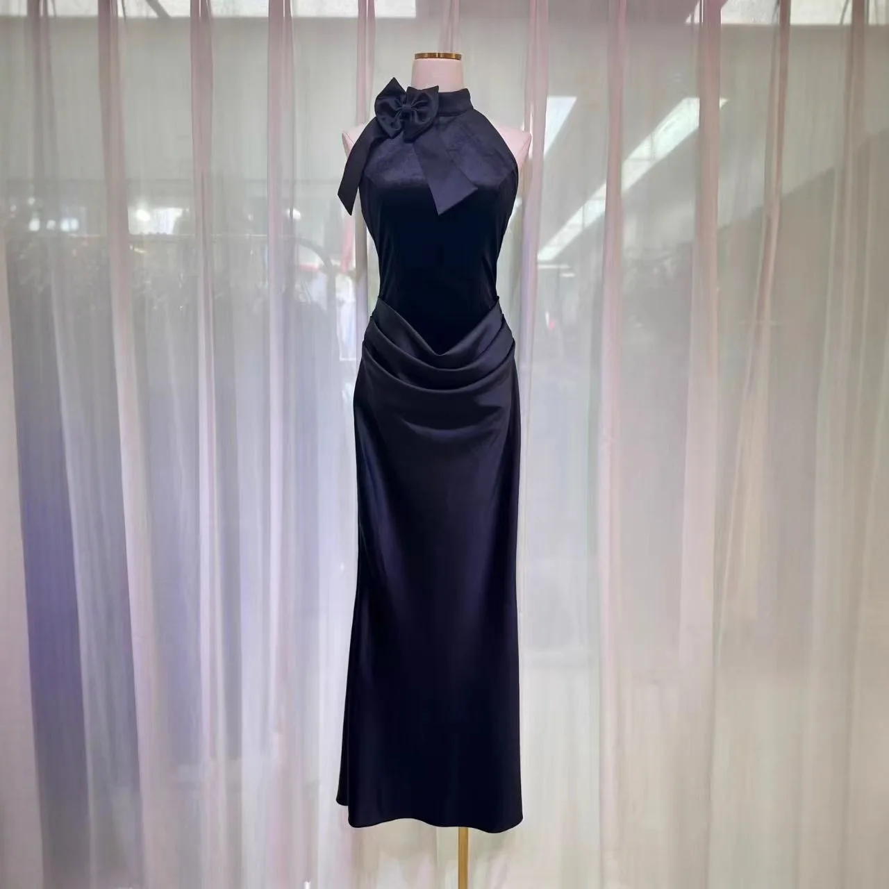Factory Wholesale Midi Elegant Dress Women European American Summer New Fashion Casual Sleeveless Slim Elegant Navy Blue Party