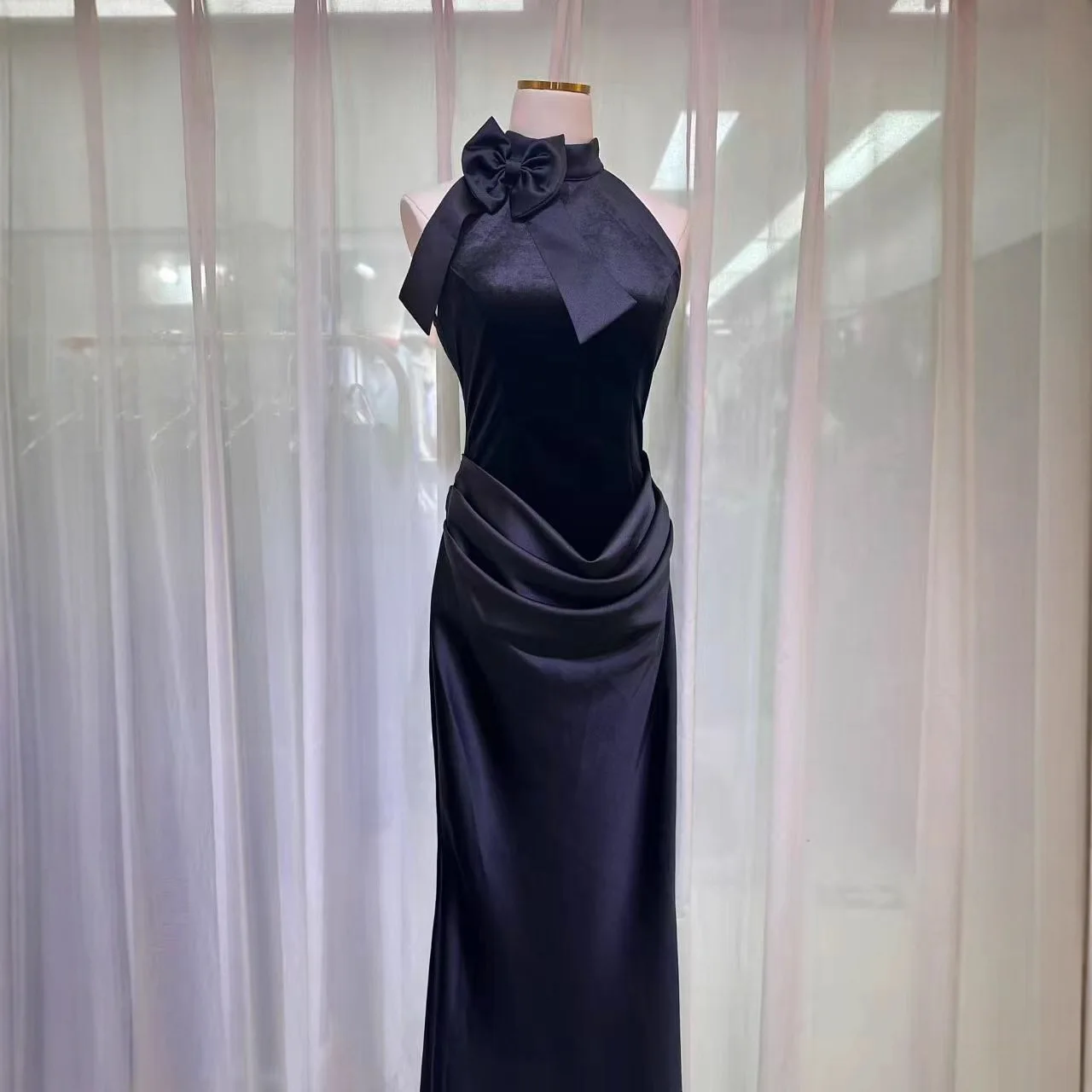 ZYHT 73902 Dark Green Blue Long Sleeve Simple Elegant Evening Dress Customize High End Women Clothing Manufacturer