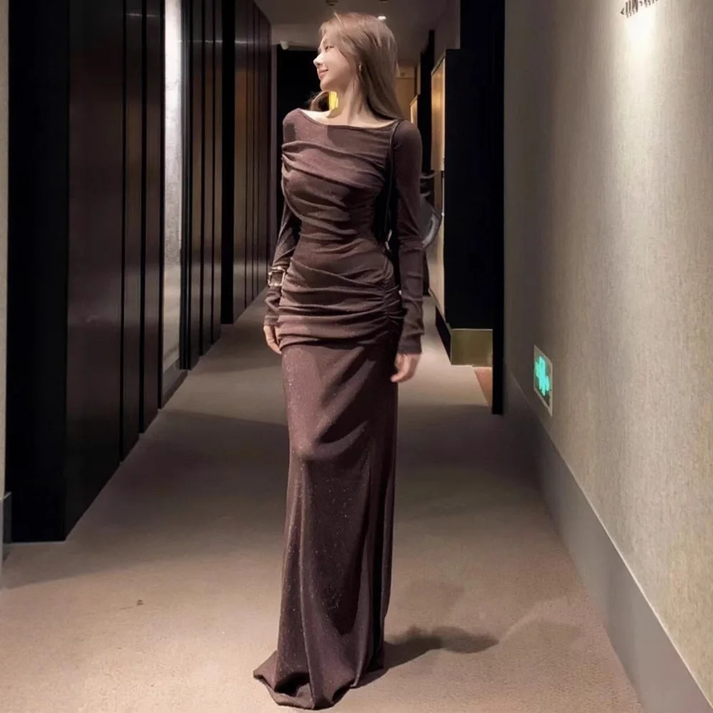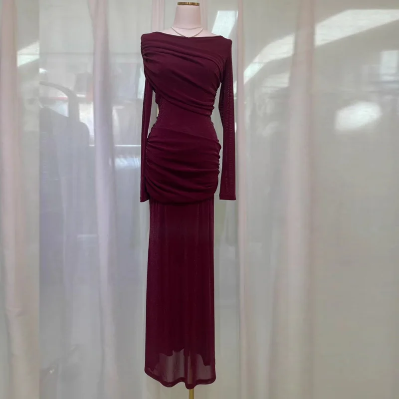 Factory WholesaleDesigner Fashion Midi Dress Women New French Sexy Slash Neck Long Sleeve Slim Knitted Off-the-shoulder Dress