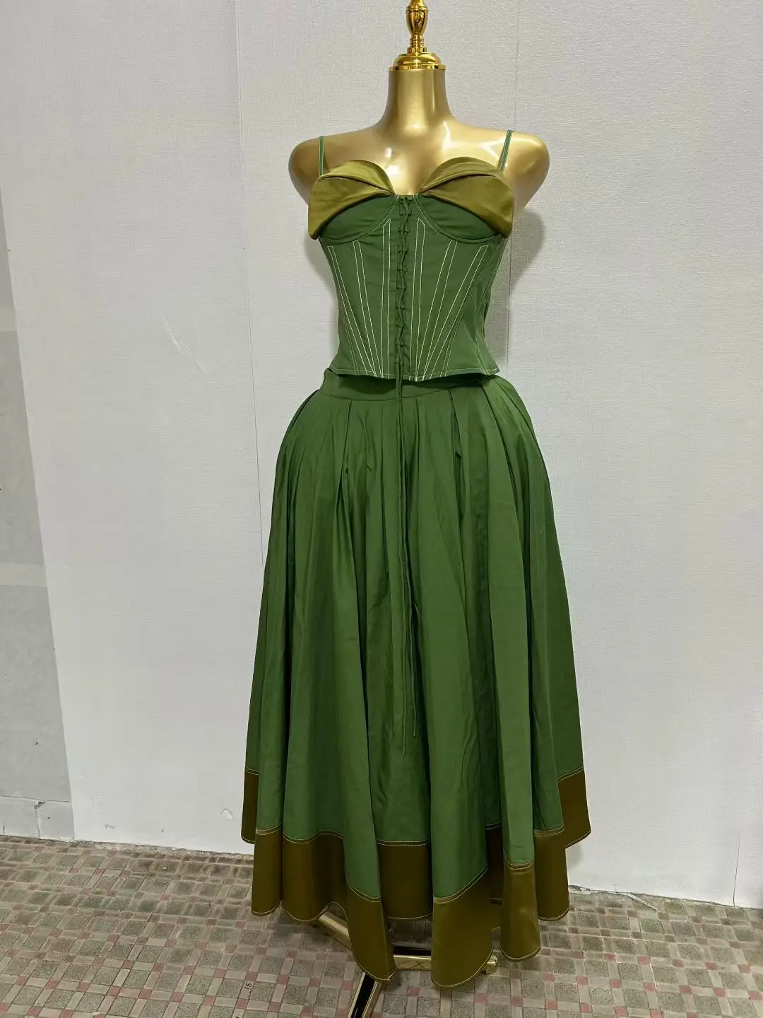 Factory Wholesale Fashion Suit Women's 2026 Early Spring Sexy Bow Collar Chest Wrap Strap Top Stitching Puffy Skirt 2-Piece Set