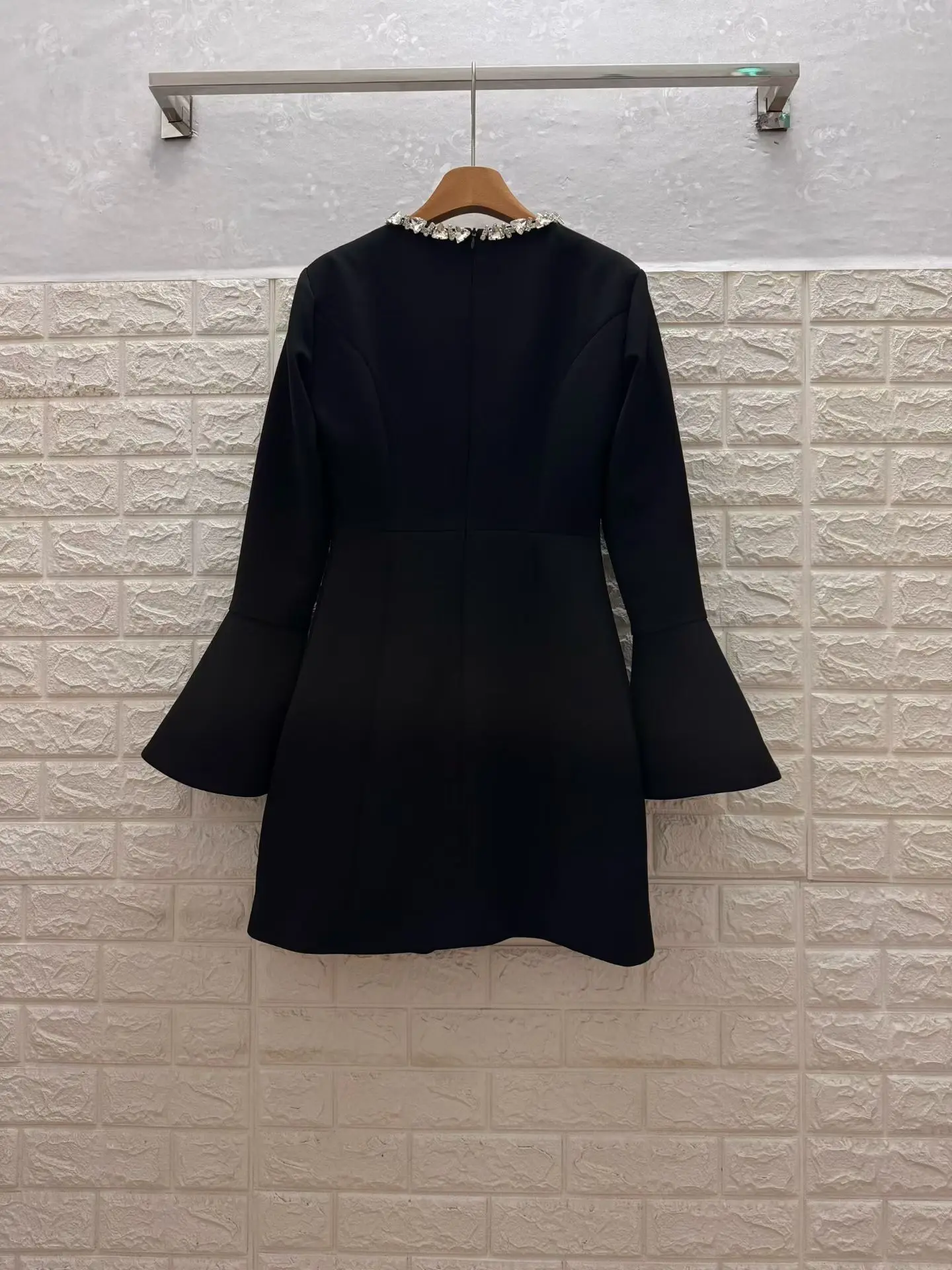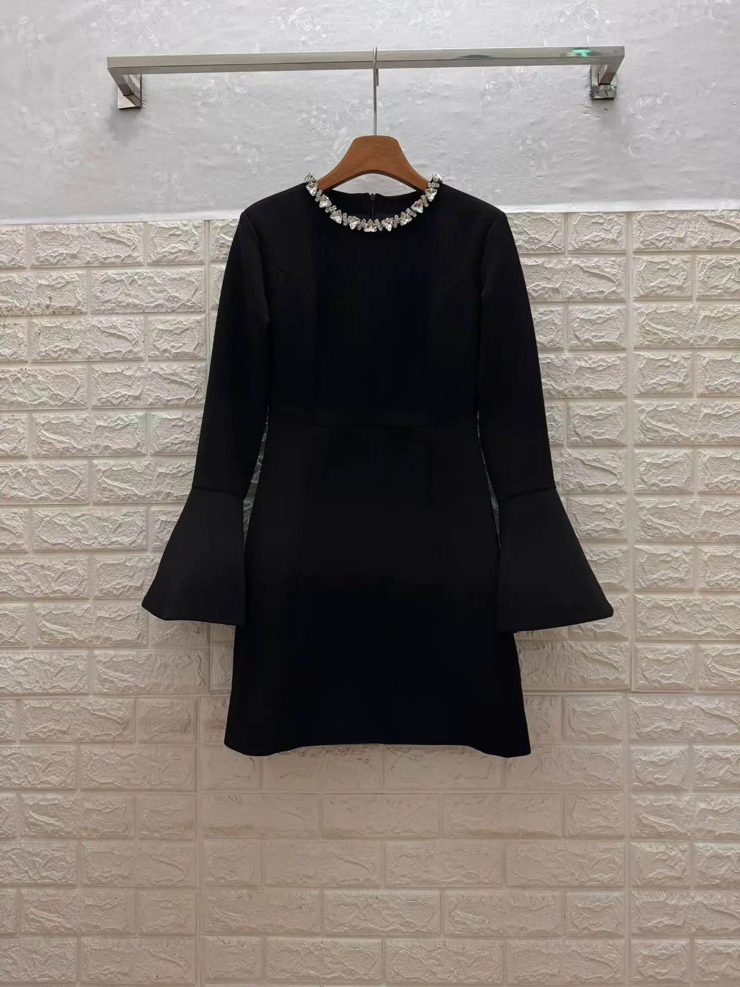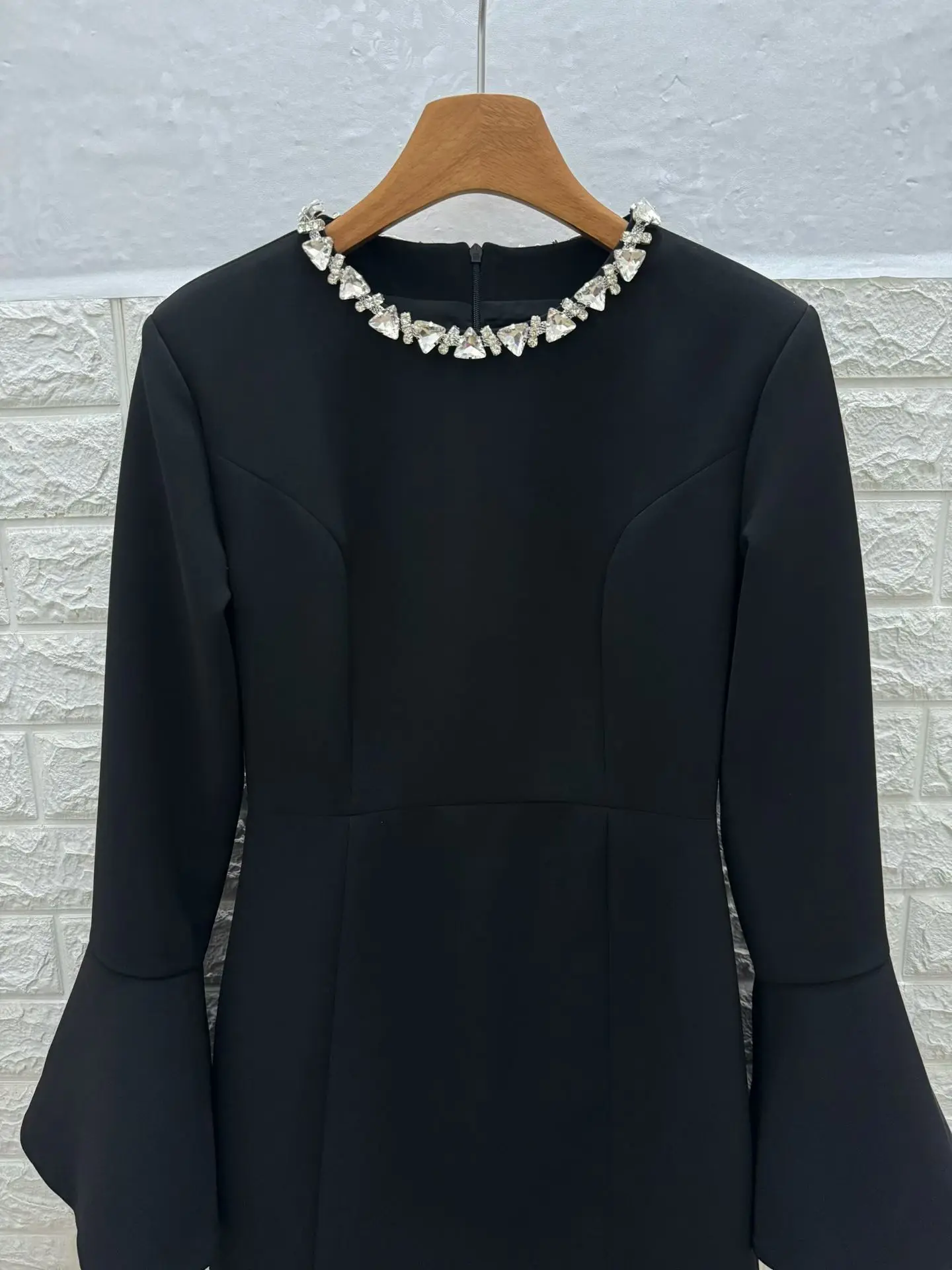 Factory Wholesale French Style Vintage Mini Dress Women Spring Autumn Flare Sleeve Black Diamonds Elegant Slimming Dress