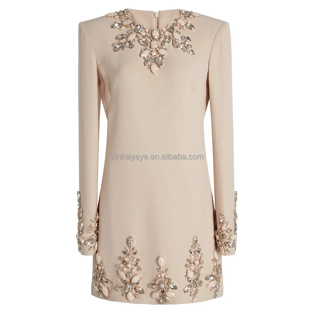 HIGH STREET Newest Fashion 2026 Autumn Long Sleeve Designer Dresses Women's High Quality Stunning Beaded Mini Party Elegant