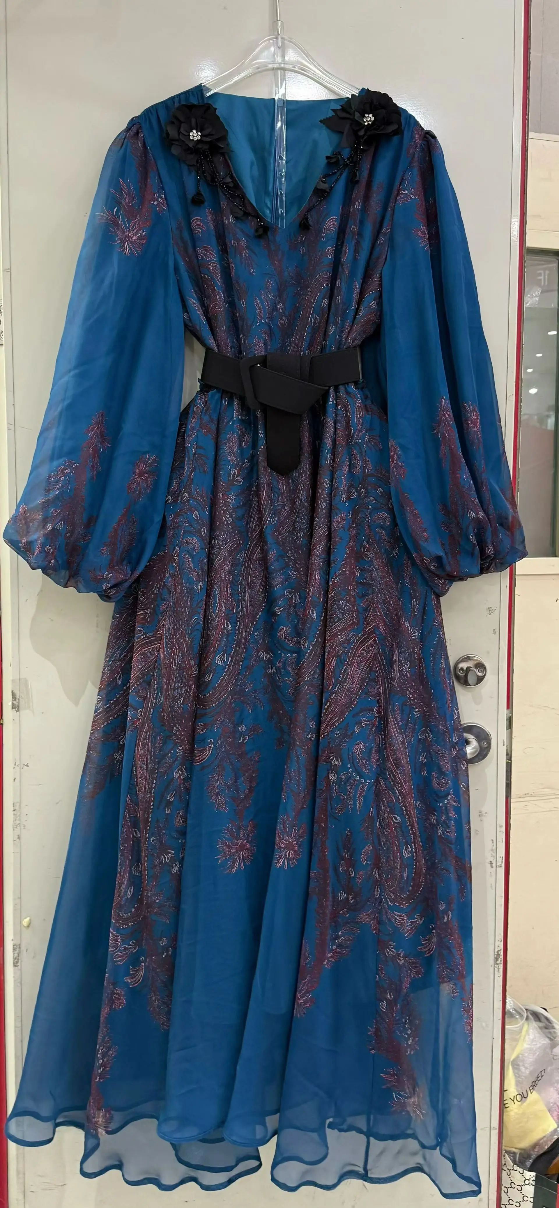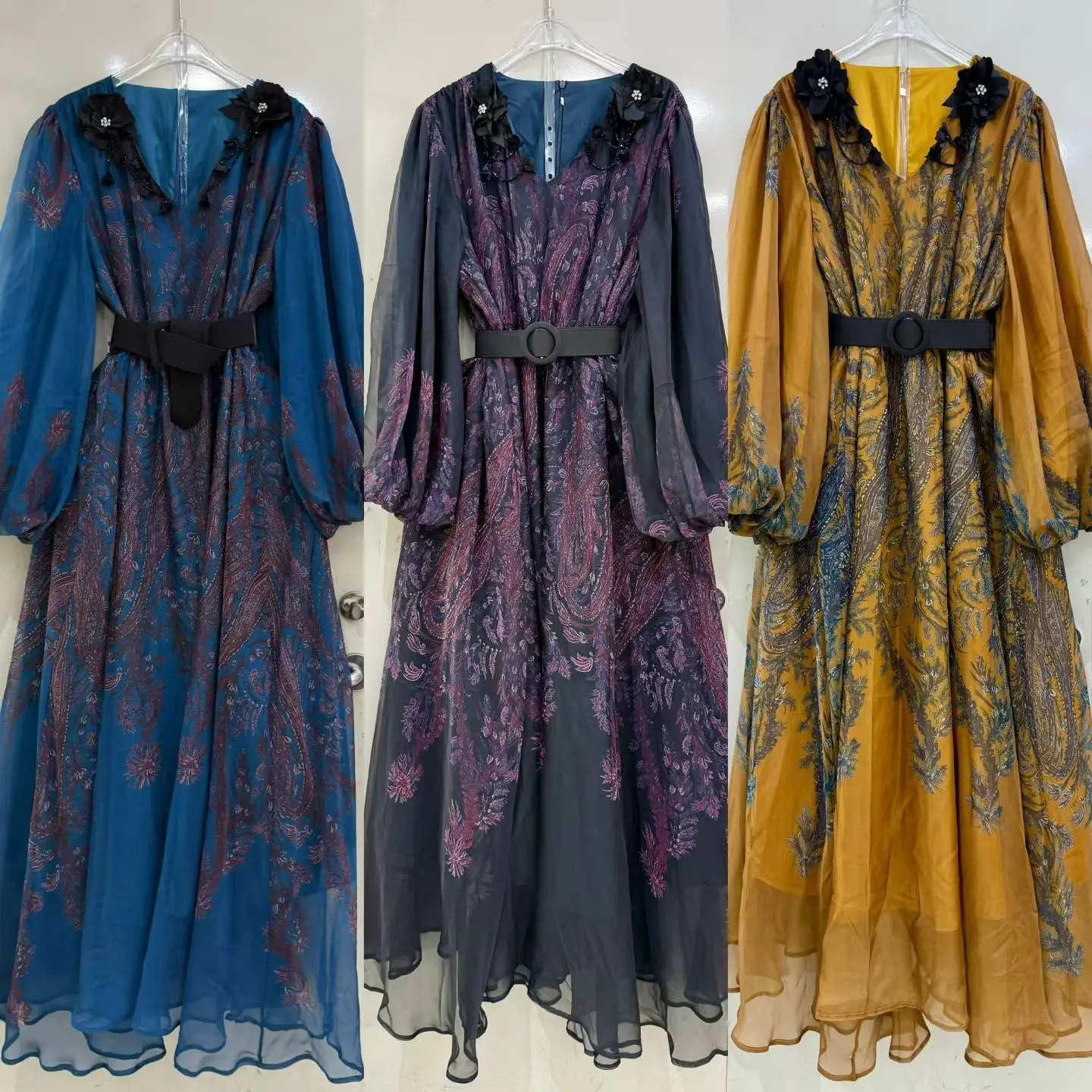 Factory Wholesale Vacation Casual Loose Dress Women Spring Autumn Lantern Sleeve Flower Printed Beading 3D Appliques Plus Size