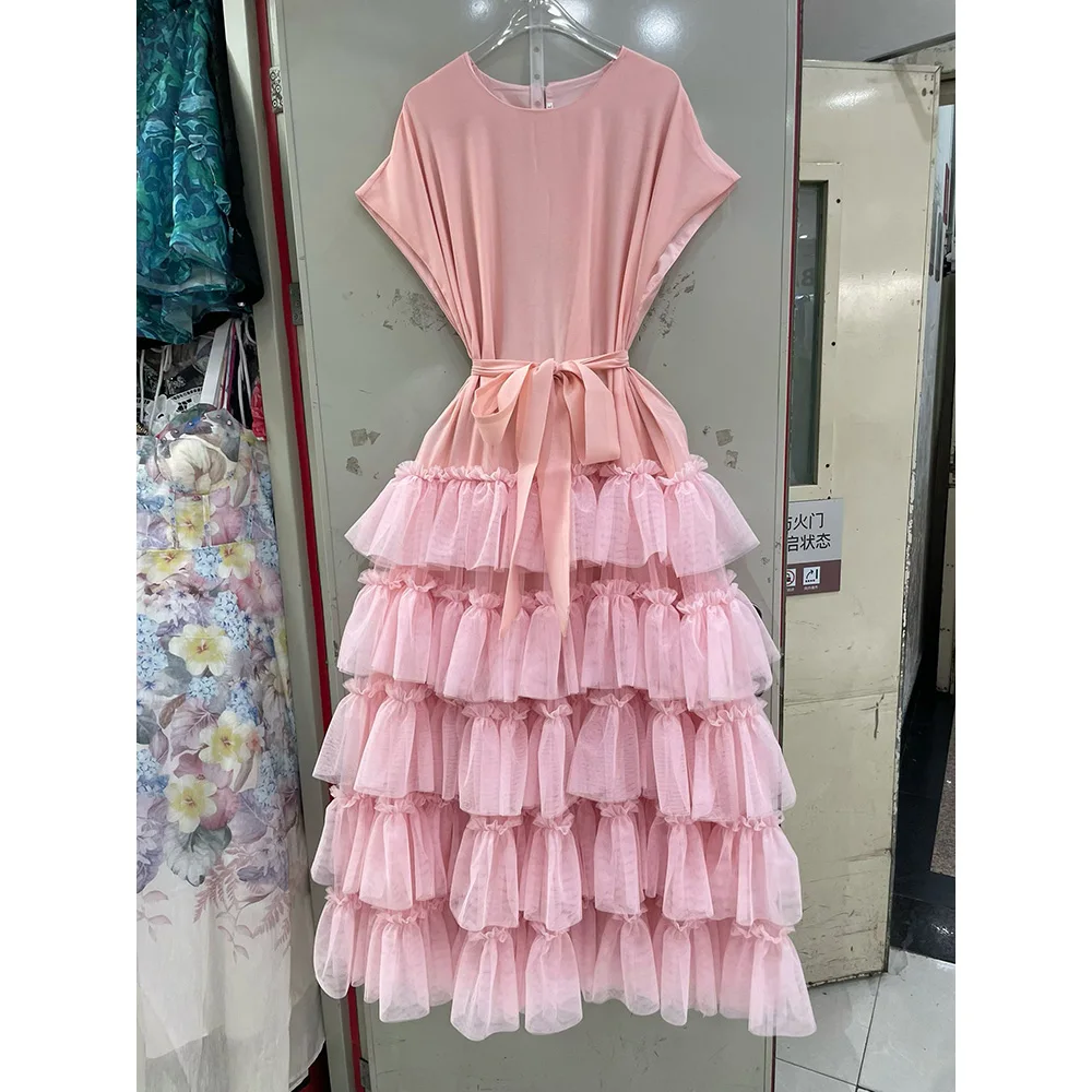 Factory Wholesale Designer Fashion Summer Midi Dress Women Three-dimensional Flower O-NeckSleeveless Ruffles Vintage Party Dress