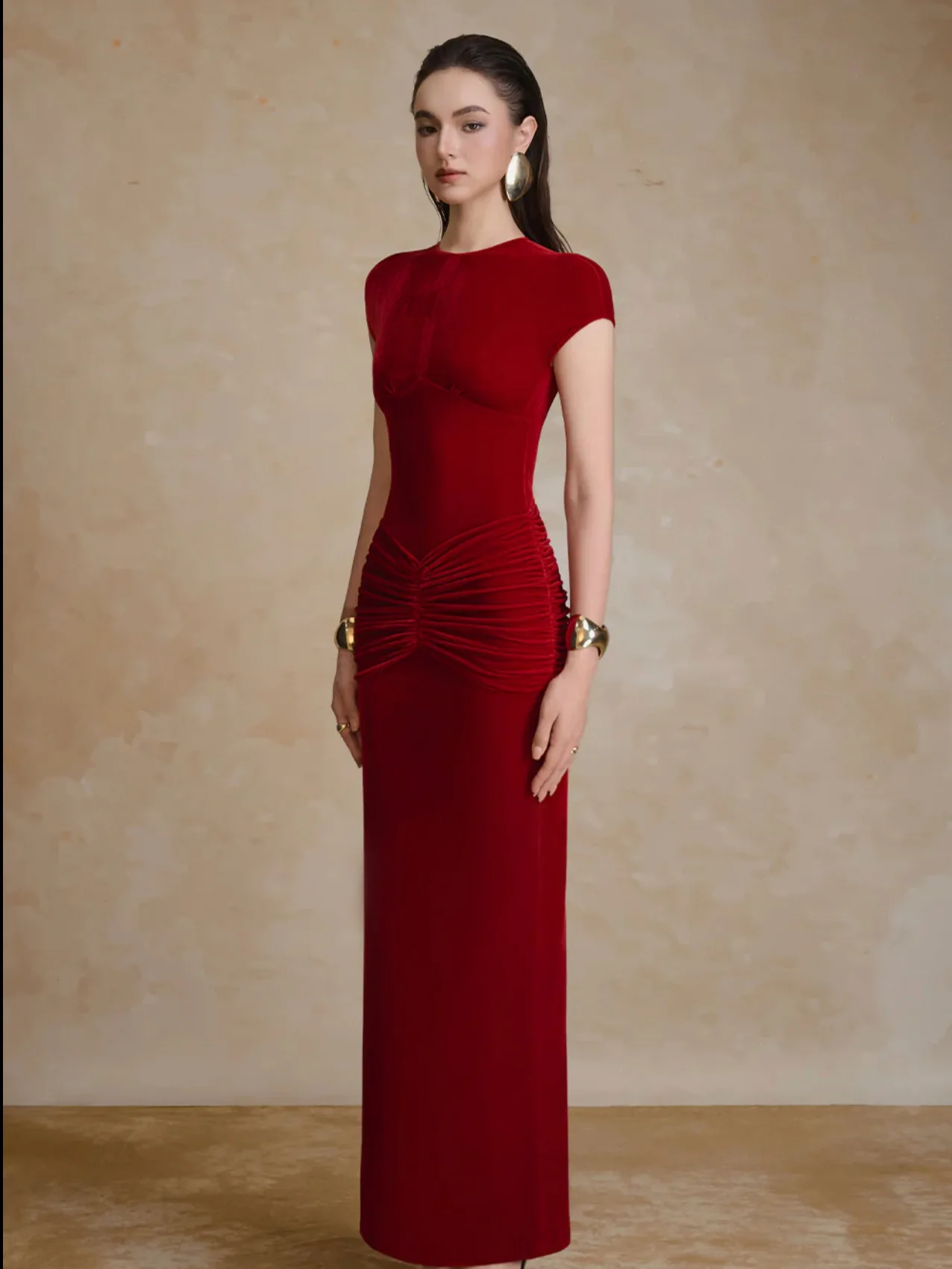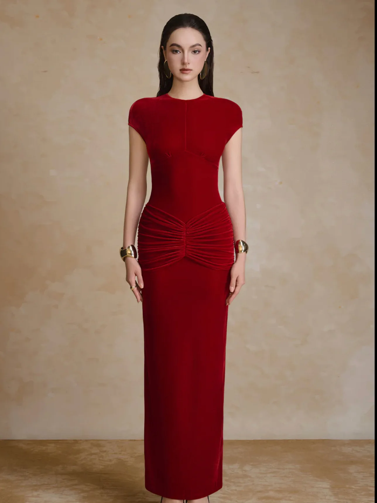 Factory Wholesale Elegant Wine Red Slim-fit Midi Dress Women Sleeveless Autumn New Draped Velvet Diamond Pleated Party Female
