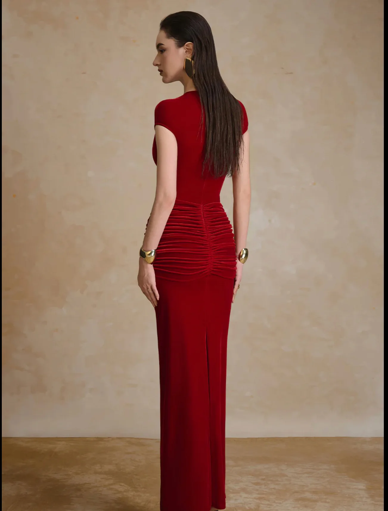 ZYHT 73905 Dusty Rose Off-The-Shoulder Long Sleeve Stretch Jersey Dress Ruched Bodice Floor Length Fish Tail Maxi Dress