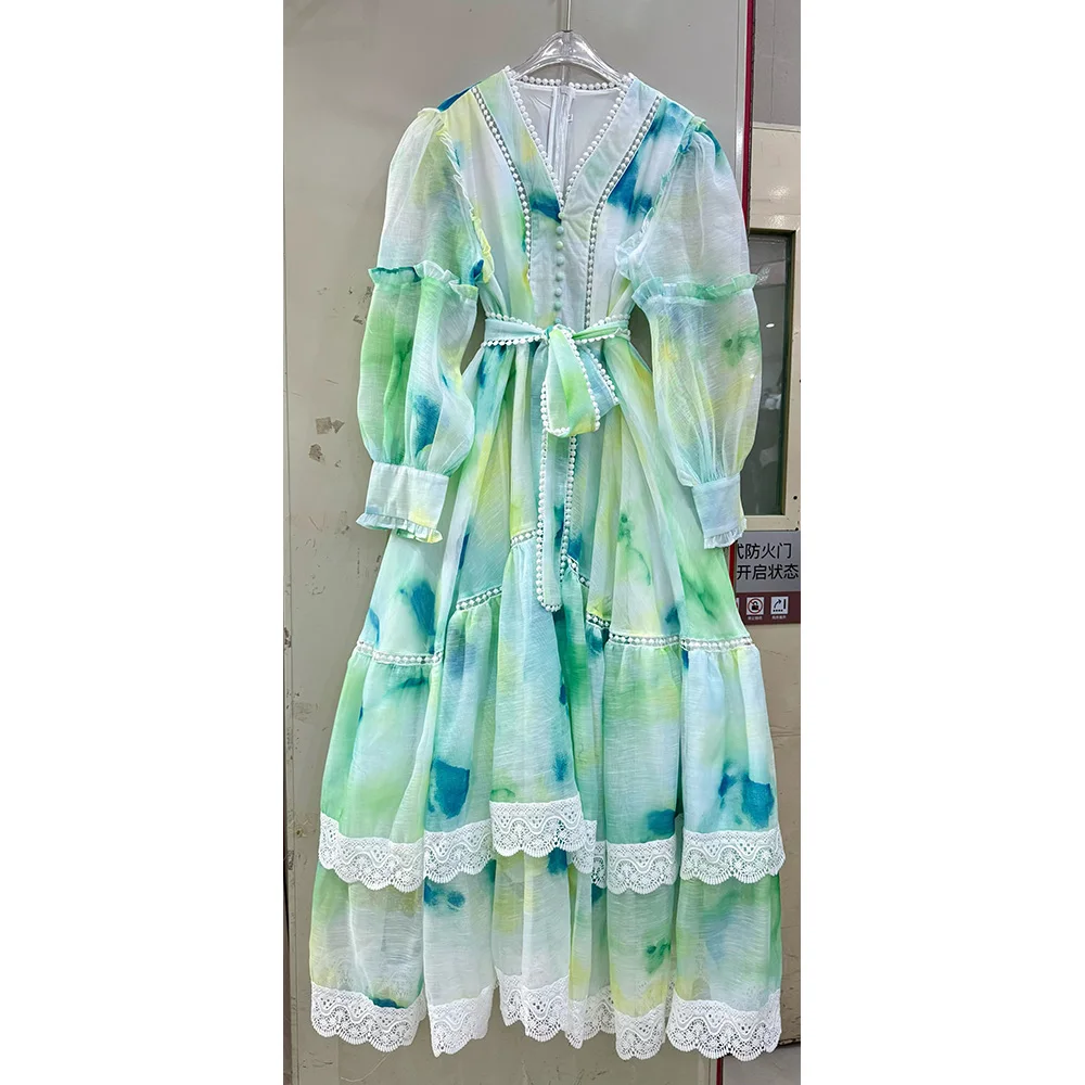 AELESEEN Factory Wholesale Autumn Winter V-Neck Midi Dress Luxury Women's Long Elegant Printed Party Vintage Dress Female