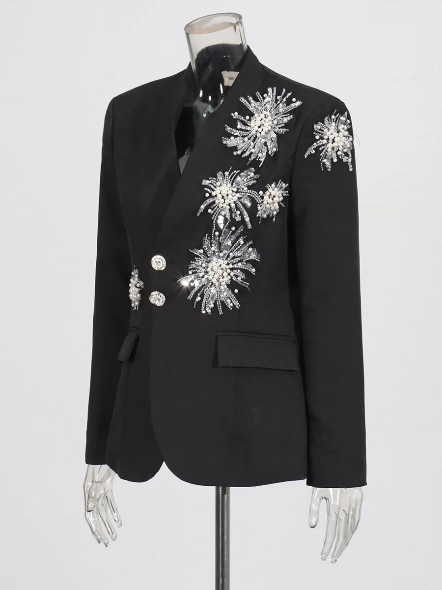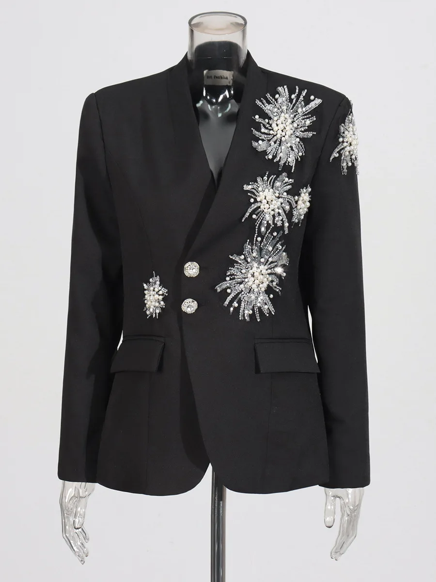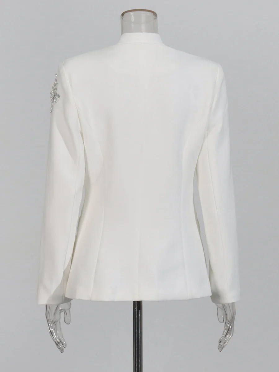 AELESEEN Office Ladies Elegant Blazer Women 2026 Spring New Design Fashion Luxury Pearls Beading Embroidery White Black Coat