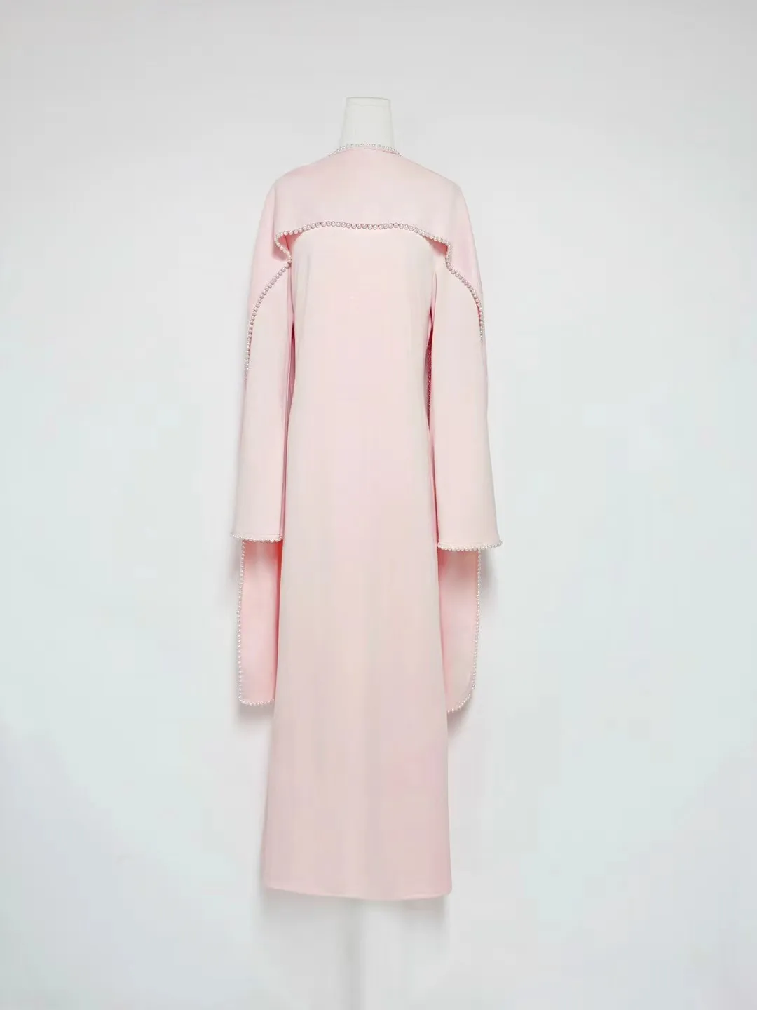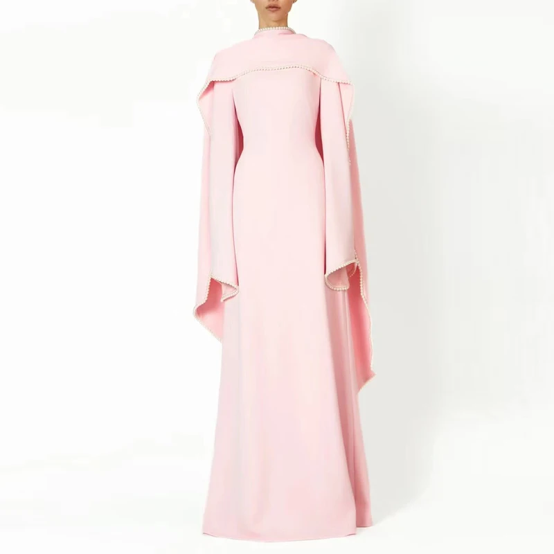 2026 Autumn Winter New Shawl Long Sleeved Dress Women Design Slim Luxurious Beading French Gentle Solid Elegant Party Dress