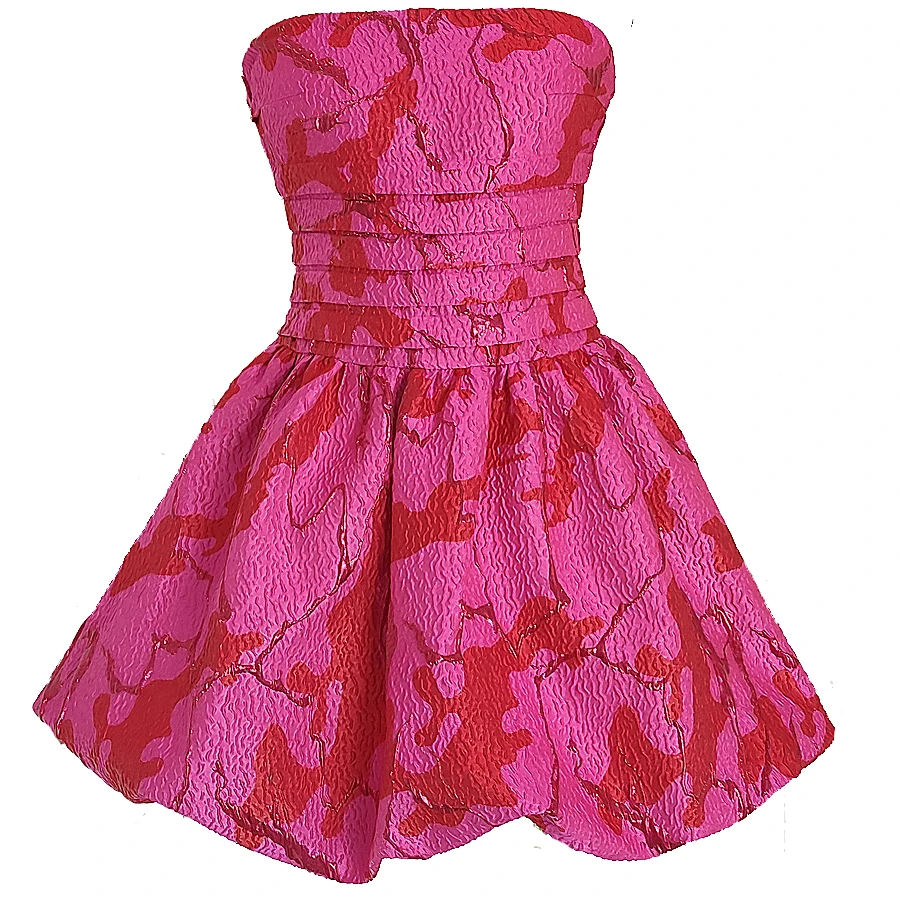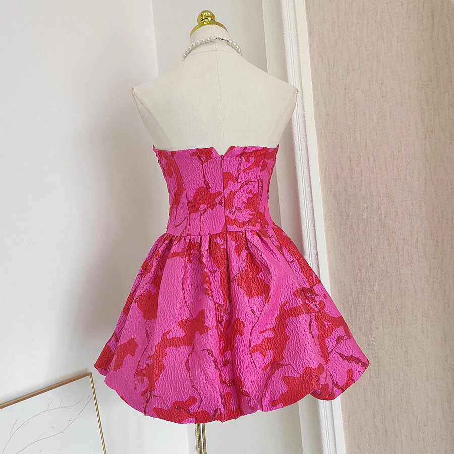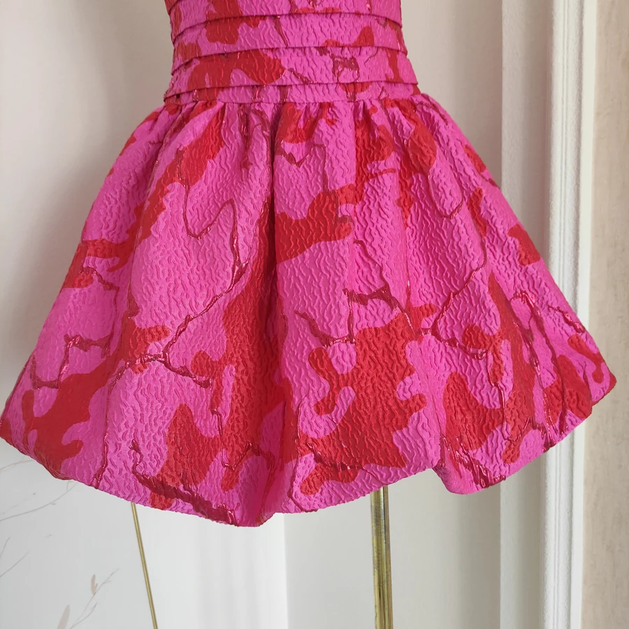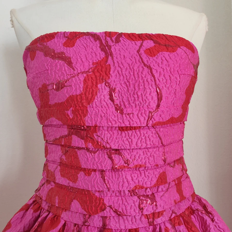 French-Style Gold-Line Jacquard Satin Dress Socialite Daughter's Waist-Length Slim-Fit Strapless Satin Party Gown Pleated