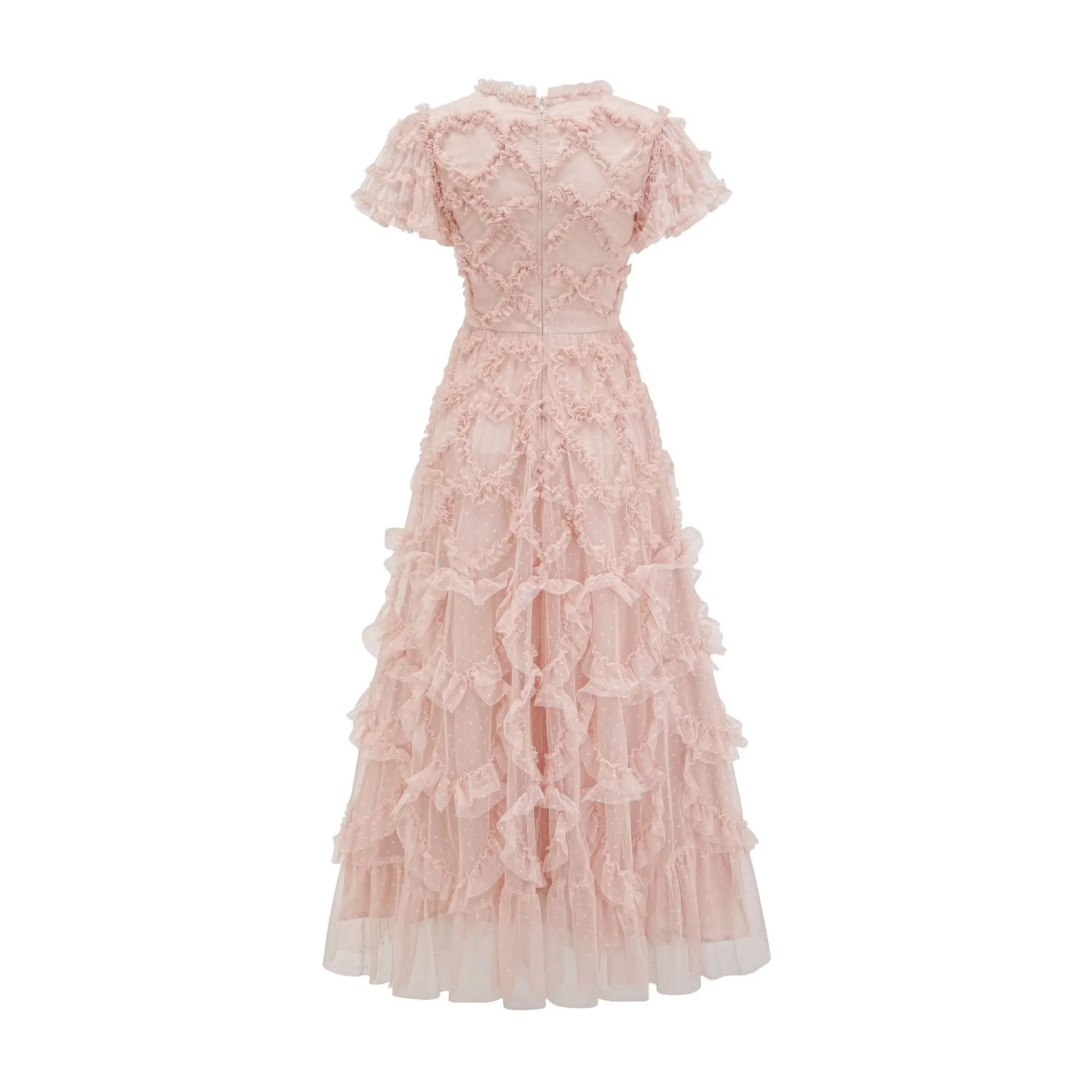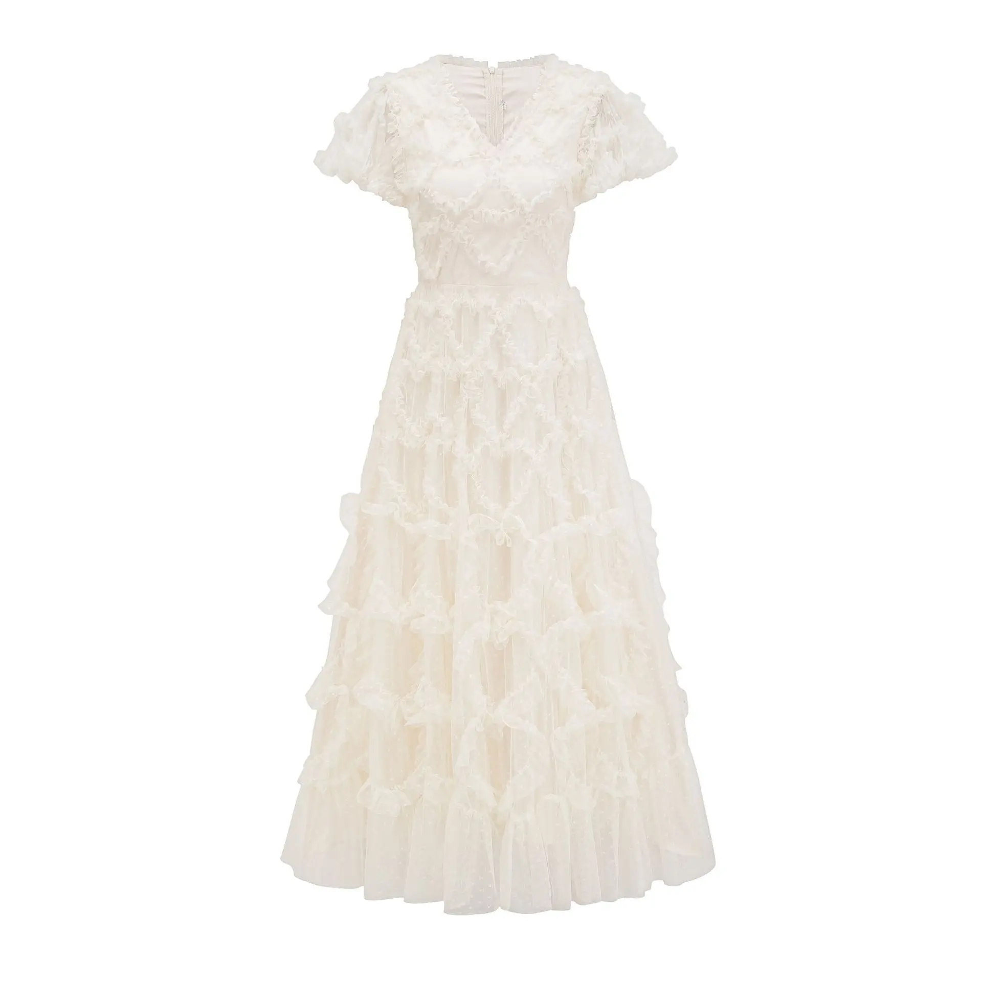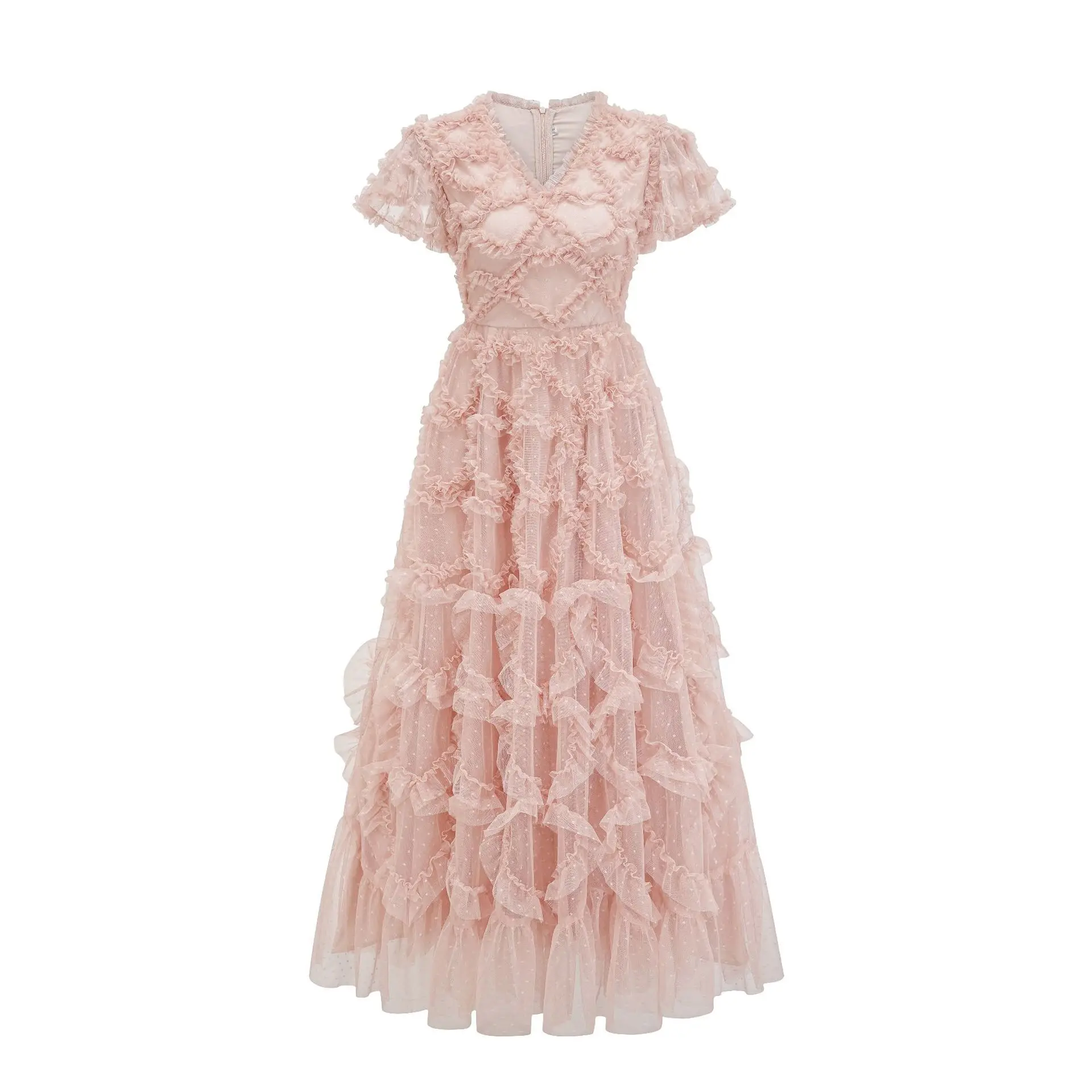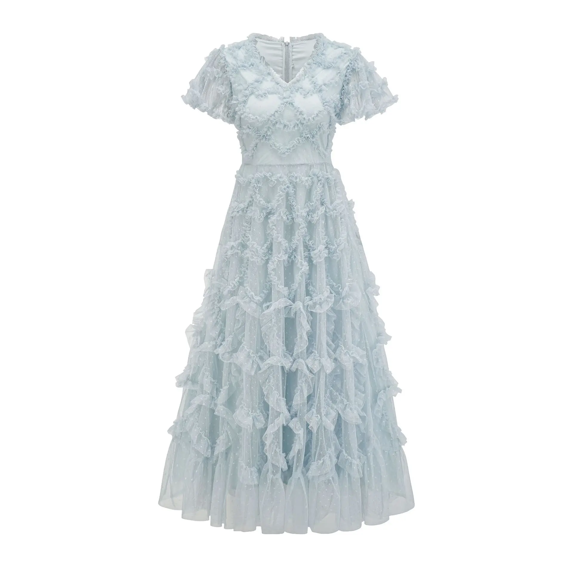 Women Summer Elegant Ball Gown Dress Short Sleeve V-Neck Floral Printed Striped Efible Tree Fungus Long Evening Party Prom